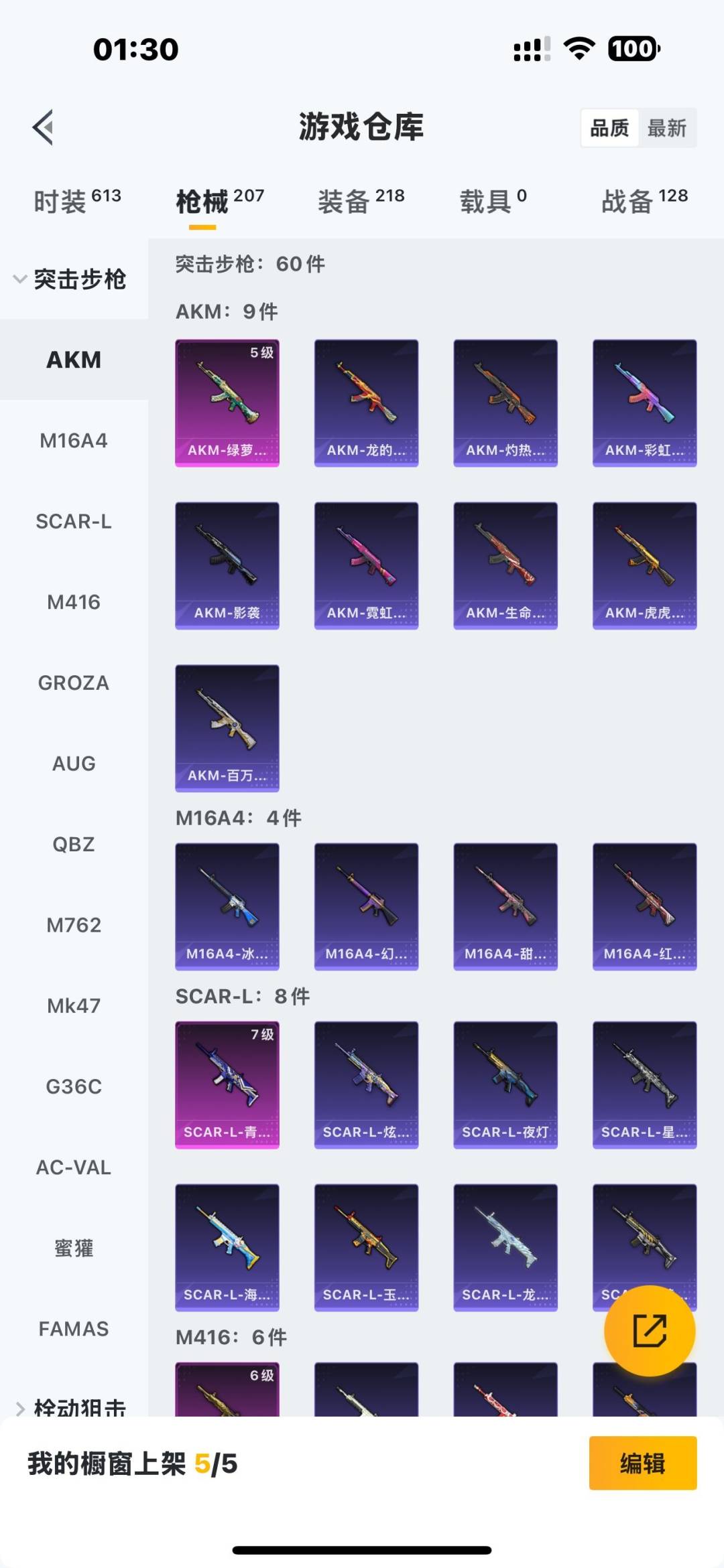 AKM-绿萝繁花,SCAR-L-青春物语,M416-五爪金龙,Kar98K-巳巳如意