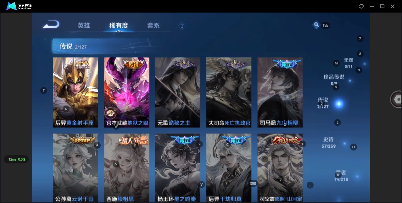 - PX_2097277-49 安卓QQ/至尊星耀/276皮肤/125英雄/1典藏/0珍品无双/1无双/3珍品传说/23传说/85史诗/9稀有英雄 【3 珍品传说】黑崎一护 宫本武藏,怪盗基德 马可波罗,时之奇旅 孙策, 【1 典藏皮肤】幻阙歌 貂蝉, 【1 无双皮肤】器灵·螭龙剑 曜, 【23 传说皮肤】启明星使 虞姬,云霓雀翎 虞姬,逐花归海 澜,云鹰飞将 曜,游龙清影 西施,猫影幻舞 貂蝉,地狱