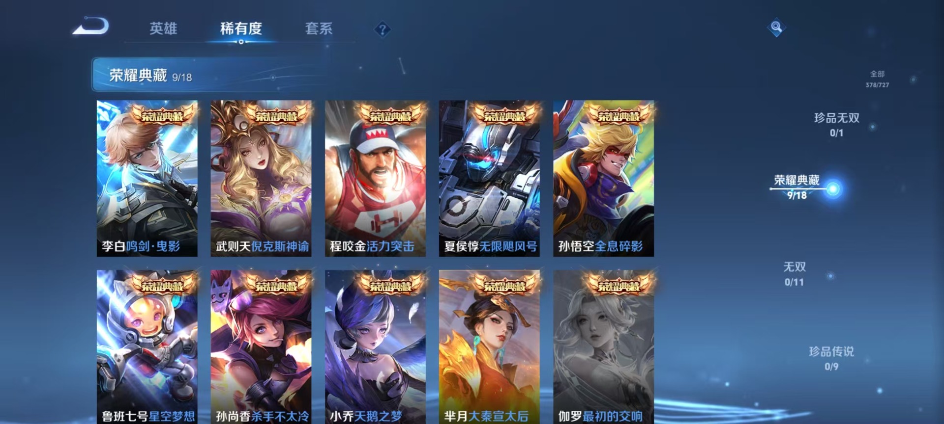 夏侯惇无限飓风号,小乔天鹅之梦,孙尚香杀手不太冷,鲁班七号星空梦想,武则天倪克斯神谕,李白鸣剑·曳影,芈月大秦宣太后,程咬金活力突击,孙悟空全息碎影