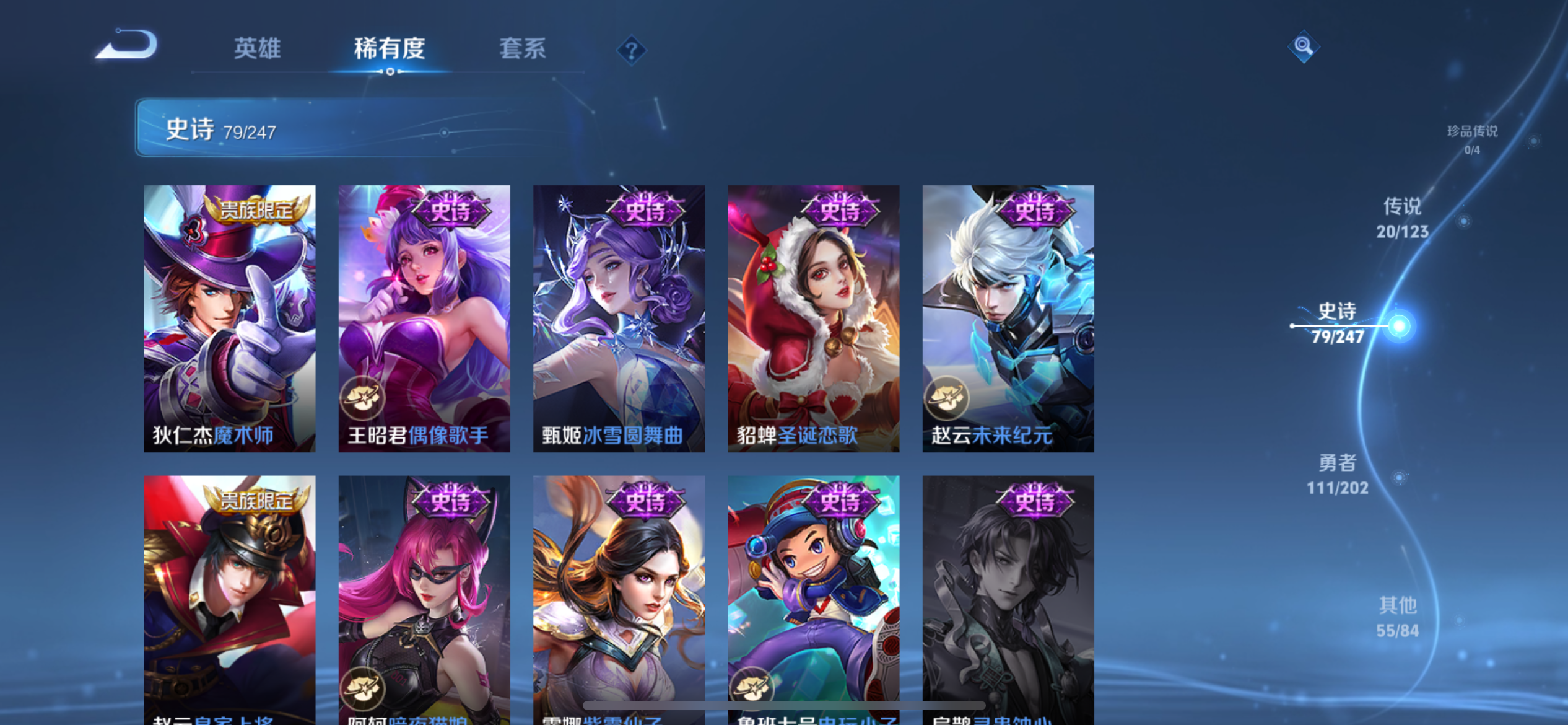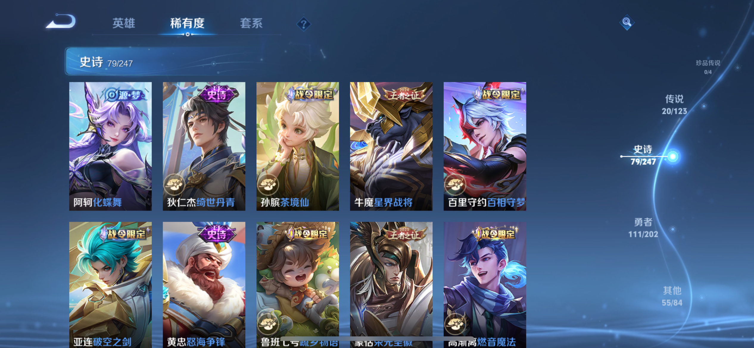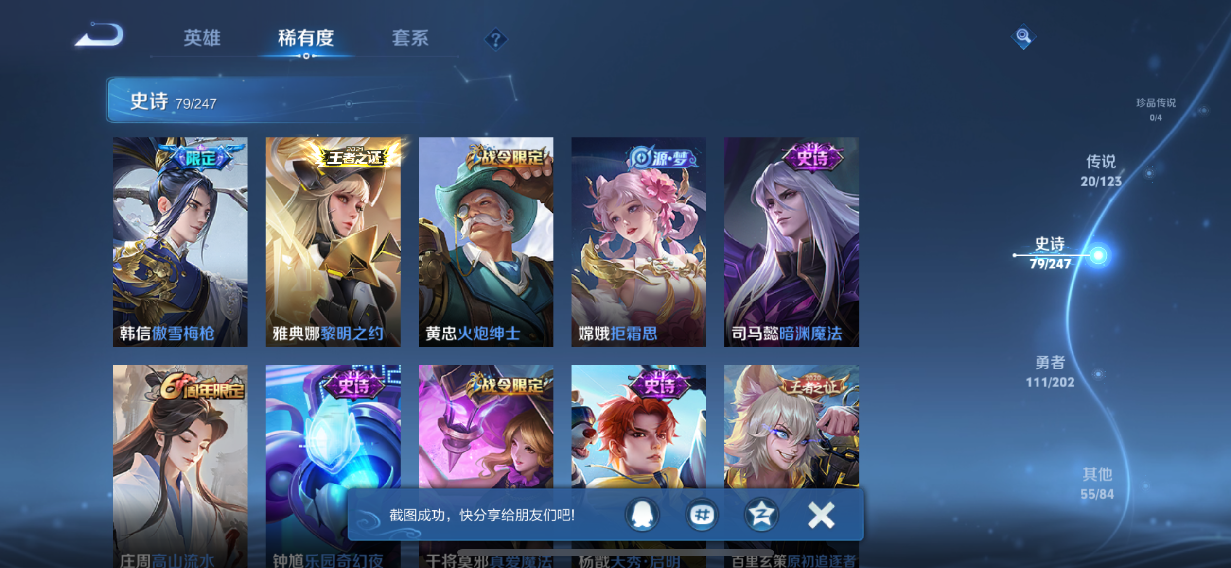 [11525838]司空震蛇年限,澜蛇年限,久胜,小将军,仲夏夜,孙尚香年限,紫霞,至尊宝,马可年限,-可二次-122英雄-265皮肤-20传说-79史诗 炽阳神光-镜 齐天大圣-孙悟空 浮生妄-夏洛特 山海·玄木吟-马可波罗 岱宗-典韦 至尊宝-孙悟空 匿光破解者-沈梦溪 街头霸王-韩信