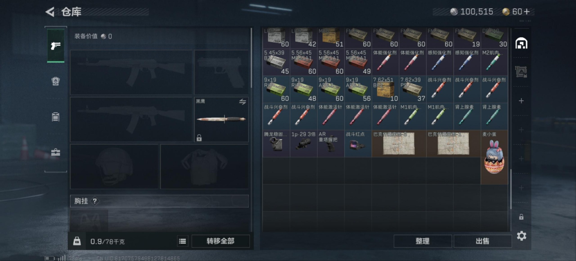 [11525875]总资产:63M 1传说枪械 哈夫币:100.515K 可二次 可修改实名 烽火地带段位:白银 全面战场段位:无段位 传说武器皮肤:复合弓-黑-天际线