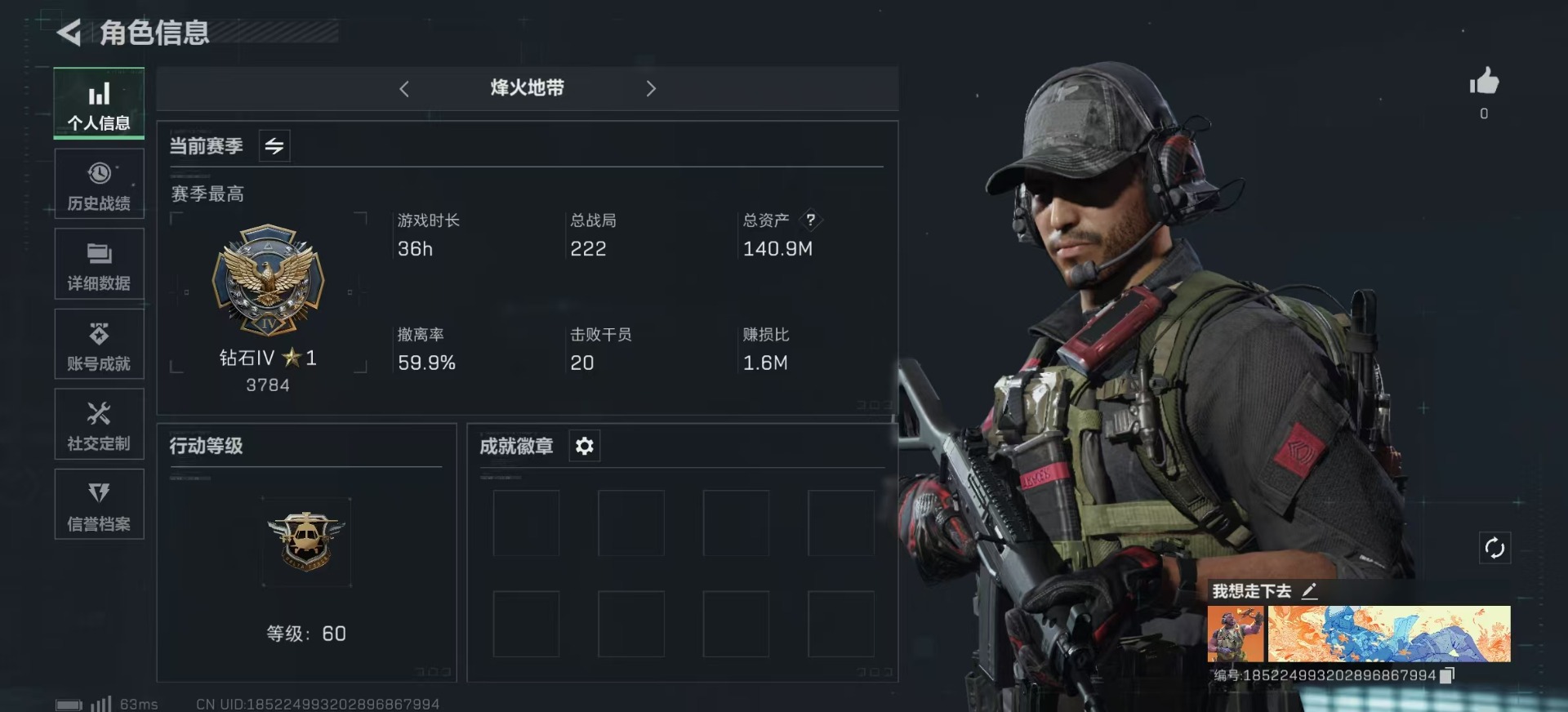 - [11883244]总资产:226.1M 10传说枪械 哈夫币:41.432K 可二次 可修改实名 优质装备:顶级安全箱(3x3) 烽火地带段位:三角洲巅峰 全面战场段位:列兵 传说武器皮肤:M4A1突击步枪-阿米娅,CAR-15突击步枪-阿米娅,复合弓-黑-天际线,AWM狙击步枪-捞点薯条,腾龙突击步枪-捞点薯条,93R-捞点薯条,AK-12突击步枪-特斯拉线圈,SR-3M紧凑突击步枪-特斯拉线圈,UZI冲锋枪-特斯拉线圈,勇士冲锋枪-能天使-午夜邮差 史诗武器皮肤:M16A4突击步枪-竞赛选手,MP5冲锋枪-深海恐惧,SV-98狙击步枪-林中猎手,沙漠之鹰-曙光