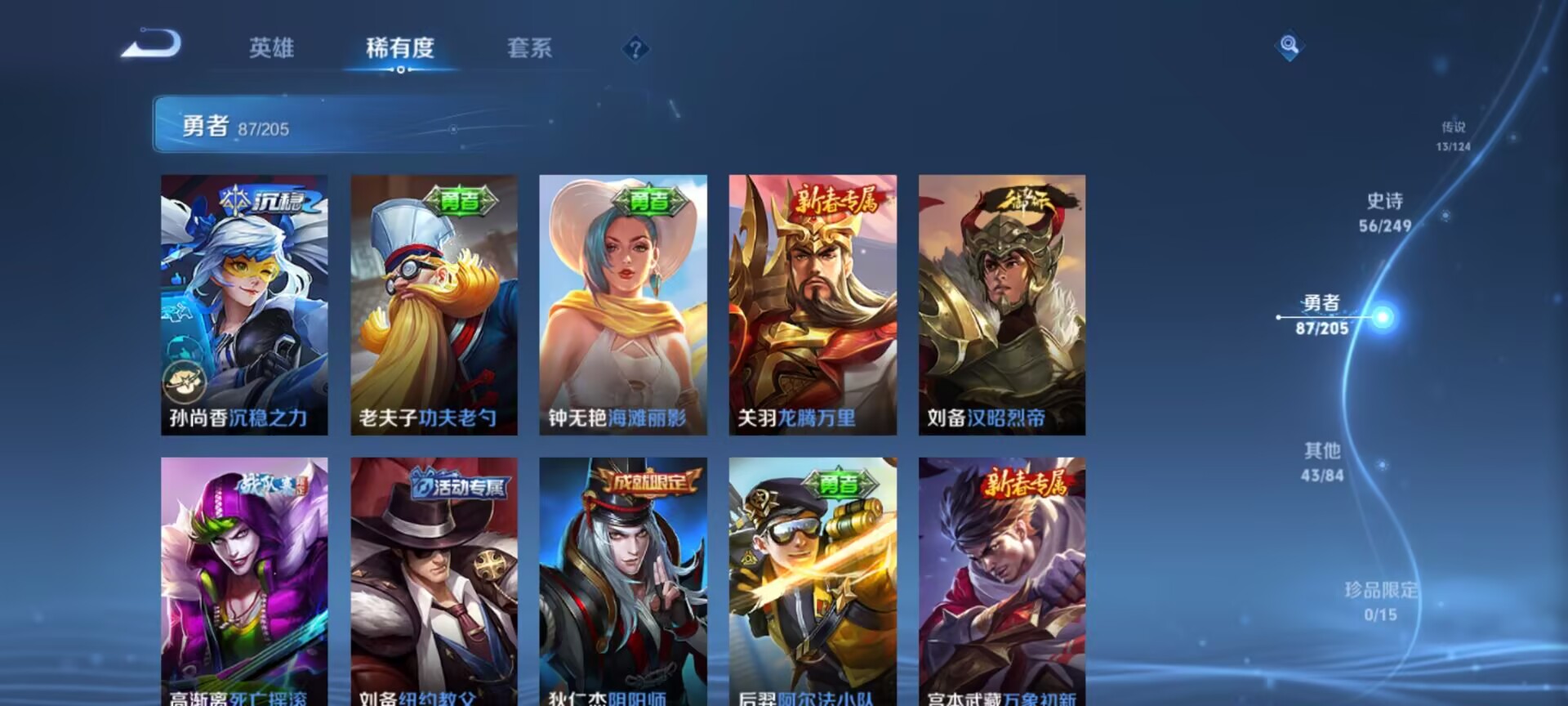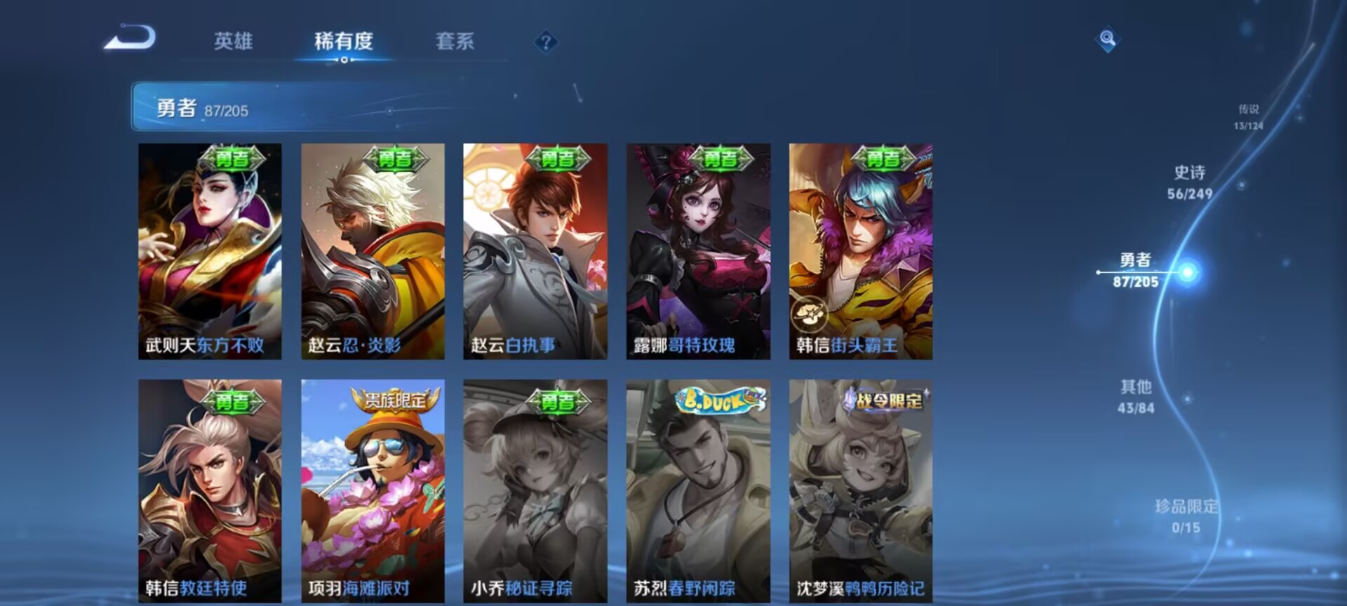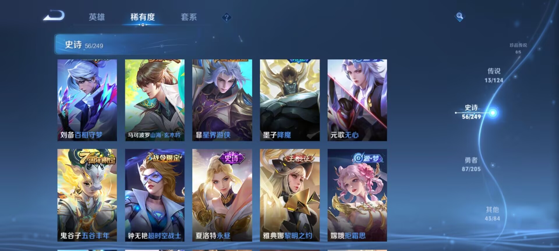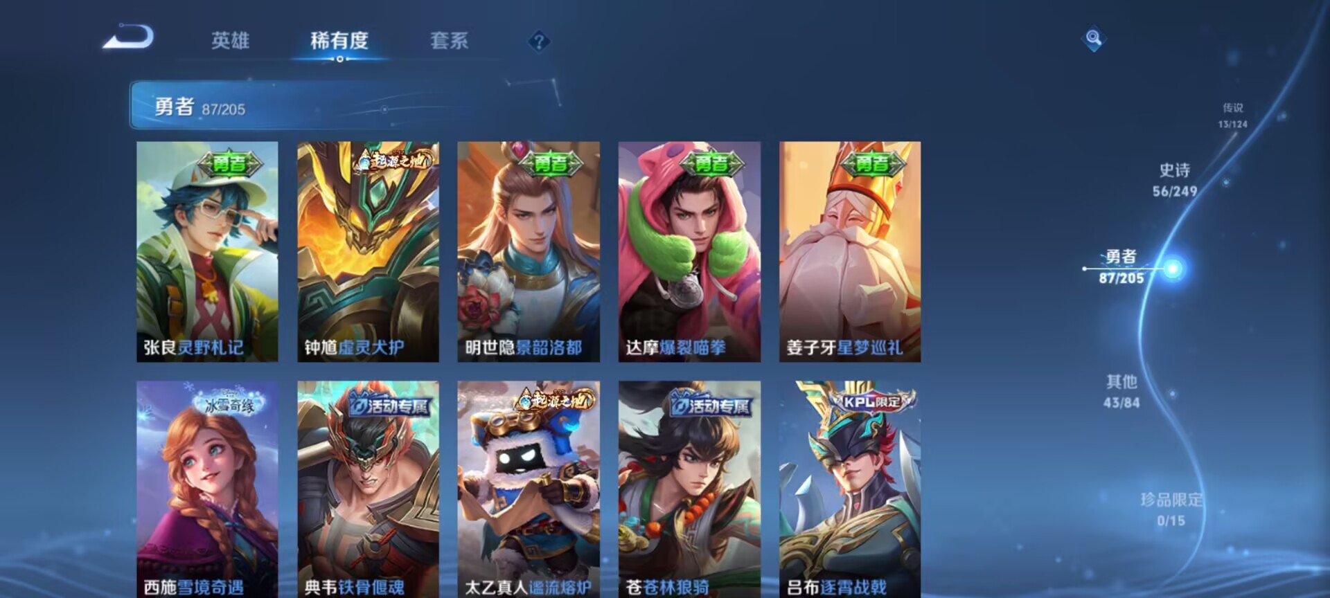 - [11672819]V10 7典藏 1无双 2珍品传说 52传说 126英雄 500皮肤 典藏英雄武则天 可修改实名 优质装备:杀手不太冷,鸣剑·曳影,全息碎影(猴子典藏),星域神启(倪克斯贼亮),九霄神辉(木兰典藏),幻阙歌(貂蝉典藏),弑枪猎影(韩信典藏),碎月剑心(李白无双),Hello Kitty,怪盗基德,黄金射手座,冠军飞将,绛天战甲(鸡嘴战神),猫影幻舞,久胜战神,一念神魔,云霓雀翎,末日机甲-孙尚香(绿蚂蚱),地狱火,仲夏夜之梦(大飞蛾),零号·赤焰,海洋之心,地狱之眼,飞鸢探春,胖达荣荣,李逍遥,时之恋人-刘备(电焊工),游龙清影(小青龙),淬星耀世,超时空战士-狄仁杰,末日机甲-孙策,挚爱之约,挚爱花嫁,无双飞将,山海·炽霜斩(李信年限),炽翼辉光(娃娃菜牛角包),百相守梦(张飞),鹤羽星尊,艾琳觅芳踪,黄金天蝎座,涂山容容 珍品传说:兔狲·蓬尾 传说皮:乘龙·问璇玑(孙尚香年限),落雪白狼,幻光神枪 珍宝阁皮:妄想食味,优雅恋人,蔷薇恋人,女武神 限定皮:愿照·岁时盈(虞姬年限),鸣野蒿,夏侯惇霜北刀,至尊宝,白虎志(电光耗子),凤求凰(白切鸡),傲雪梅枪,补天,前尘镜,星穹之声,魔法小厨娘,飞衡(韩信年限),遇见飞天,高山流水,诗剑行,匿光决锋者,降魔,五谷丰年,冰锋战神,幽恒(沐浴露),武圣,游园惊梦,梁祝,逐梦之翼,逐梦之星,岱宗(典韦年限),天狼溯光者,祈雪灵祝(雪兔子),李小龙,玄武志(苏烈年限),朱雀志(守约年限),如梦令-嫦娥,圣诞老人,奇迹圣诞,真爱至上,纯白花嫁,猪悟能,大圣娶亲,天魔缭乱,青春决赛季,冰霜恋舞曲,热情桑巴,美猴王,匿光追影者,寅虎·瑞焰(虎皮蛋子),寅虎·赤拳(老虎年限),时之祈愿-瑶(瑶传限),百木心枪,启示之音,无尽星芒,深海之息(深海大菠萝),天降福星 史诗皮:鸭鸭历险记-刘禅,器灵·浮梦炉,狼魂孤将,化蝶舞,灵蛊蚀心,星界战将,谪仙醉月,龙之律动,雪豹·霜爪,藏狐·褐绒,石田雨龙,百相守梦-周瑜,戍鼓铭心,茶境仙,怒海争锋,炽弈燎原,东方月初,埋骨钱,芈月浮光幕影,海诺心动手记,琥珀纪元伽罗,决胜骁骑,上官婉儿群星魔术团,蔬乡物语(鲁班七号),百相守梦-百里守约,百相守梦-黄忠,紫霞仙子,苍穹之光,电玩小子(小书包),白龙吟,黄金分割率,特工魅影,千年之狐,永昼,末日机甲-莱西奥,雪夜绮愿(周瑜),魅语,百解令(蒙