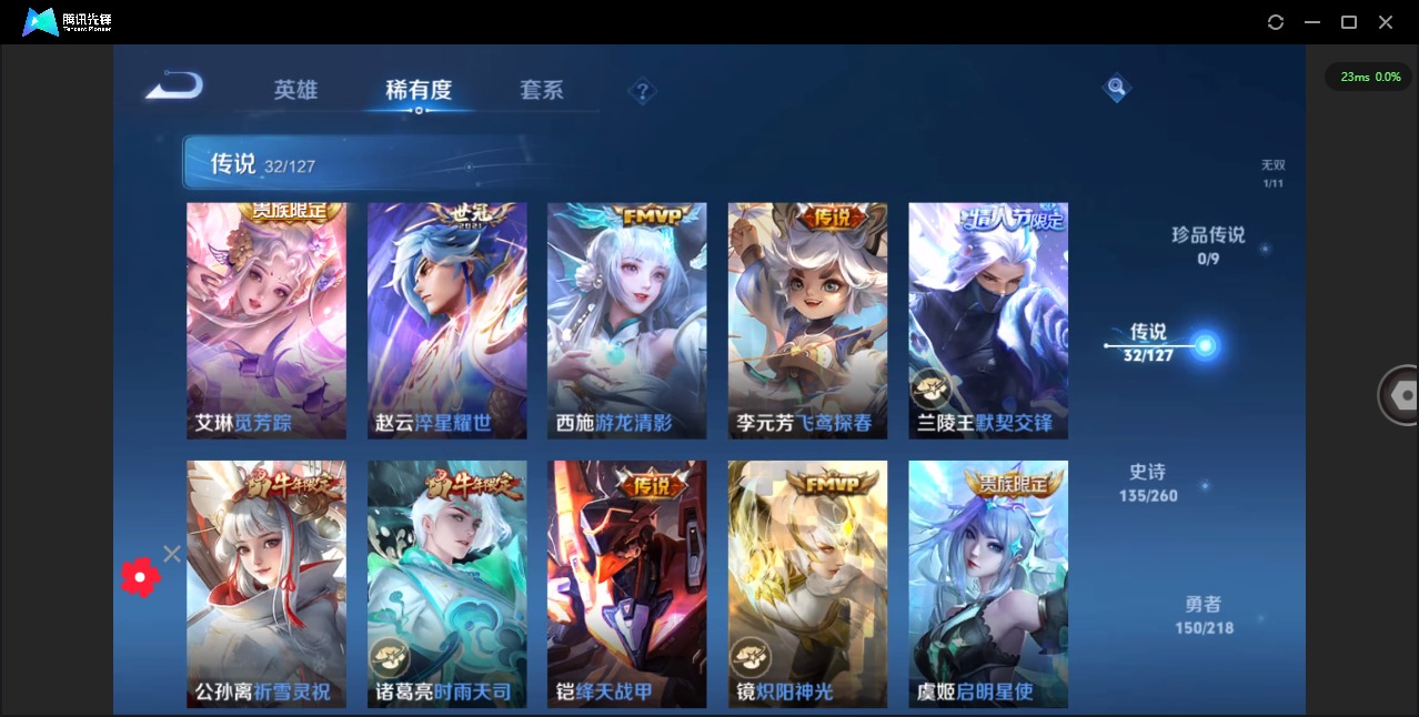 - [11576776]V10 6典藏 1无双 4珍品传说 32传说 125英雄 401皮肤 典藏英雄武则天 可修改实名 优质装备:天鹅之梦(小乔典藏),无限飓风号(高达),活力突击,鸣剑·曳影,银白咏叹调(倪克斯侍卫),神鉴启示录,花合斗,江户川柯南,怪盗基德,酷洛米之心,黄金狮子座,黄金射手座,绛天战甲(鸡嘴战神),一念神魔,零号·赤焰,海洋之心,李逍遥,时之恋人-刘备(电焊工),淬星耀世,超时空战士-狄仁杰,末日机甲-孙策,挚爱之约,山海·炽霜斩(李信年限),鹤羽星尊,灼幽烈阳,艾琳觅芳踪,朵莉亚心动手记,牧神诗旅,玄雷天君 珍品传说:兔狲·蓬尾 珍宝阁皮:妄想食味,女武神,玩趣恶龙 限定皮:愿照·众生和(妲己年限),逐霄战戟,夏侯惇霜北刀,白虎志(电光耗子),太华(伽罗年限),异界灵契(白毛香),白晶晶,时雨天司(水龙头),神威(电光马子),无限倾心-项羽,高山流水,齐天大圣,怒海麟威,五谷丰年,游园惊梦,梁祝,岱宗(典韦年限),李小龙,逐梦之光,辉光之辰,默契交锋-花木兰,猪悟能,大圣娶亲,天魔缭乱,无尽星芒,枫霜尽,冰霜神祇 史诗皮:鸭鸭历险记-刘禅,器灵·浮梦炉,化蝶舞,灵蛊蚀心,星界战将,龙之律动,雪豹·霜爪,藏狐·褐绒,布丁狗之誓,茶境仙,破空之剑,涂山红红,蔬乡物语(鲁班七号),百相守梦-百里守约,紫霞仙子,苍穹之光,电玩小子(小书包),黄金分割率,特工魅影,千年之狐,永昼,魅语,蒙恬荣光圣徽,偶像歌手,晚萤,电玩·爆裂旋风,暗夜猫娘,龙骑士(小龙虾),末日机甲-吕布,猫狗日记-孙策,猫狗日记-大乔,乱世虎臣,节奏热浪,修罗,女仆咖啡,摇滚巨星,水果甜心,绅士熊喵,天才门将,星夜王子,心灵骇客,功夫厨神,德古拉伯爵,暗隐猎兽者,幽灵船长,鬼剑武藏,心灵战警,乐园奇幻夜,舞动绿茵,地狱岩魂,诗语江南,纤云弄巧,繁星吟游(呼啦呼啦),缤纷独角兽,乘风破浪,逐浪之夏,水晶猎龙者,曙光守护者,箭羽风息,金属风暴,原初追逐者,圣诞狂欢,圣诞恋歌,鹰眼统帅,王者之锤,暗夜贵公子,魅力维加斯,黎明之约,奇遇舞章,天秀·音浪,无心,未来纪元-赵云