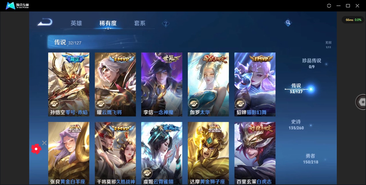 - PX_2094289-贵族等级: V10 英雄数: 124 皮肤数: 396 荣耀水晶: 武则天,倪克斯神谕,杀手不太冷,鸣剑·曳影,全息碎影 星传说: 幻海之心,零号·雷霆,金色仲夏夜 传说皮: 黄金狮子座,黄金射手座,冠军飞将,云鹰飞将,绛天战甲,黄金白羊座,猫影幻舞,久胜战神,炽阳神光,一念神魔,云霓雀翎,末日机甲-孙尚香,地狱火,仲夏夜之梦,零号·赤焰,海洋之心,地狱之眼,胖达荣荣,李逍遥