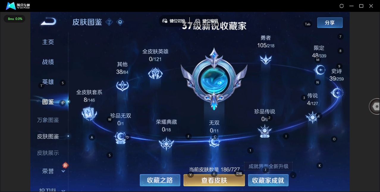 - [12258788]V9 2典藏 1珍品传说 32传说 126英雄 267皮肤 典藏英雄武则天 可修改实名 优质装备:鸣剑·曳影,九霄神辉(木兰典藏),酷洛米之心,黄金射手座,云鹰飞将(小将军),绛天战甲(鸡嘴战神),猫影幻舞,久胜战神,炽阳神光,一念神魔,云霓雀翎,地狱火,海洋之心,地狱之眼,飞鸢探春,胖达荣荣,时之恋人-刘备(电焊工),淬星耀世,遇见胡旋,无双飞将,诡秘之主,涂山容容 传说皮:死亡执政官,九山相柳,云诺千山,星之鸣奏,幻光神枪 珍宝阁皮:玩趣恶龙 限定皮:愿照·九州拓(澜年限),至尊宝,凤凰于飞,太华(伽罗年限),武陵仙君(小桃花),异界灵契(白毛香),傲雪梅枪,时之彼端,神威(电光马子),飞衡(韩信年限),玄嵩(庄周年限),至美·化雀舞,高山流水,诗剑行,怒海麟威,五谷丰年,幽恒(沐浴露),游园惊梦,梁祝,岱宗(典韦年限),虎魄,天狼绘梦者,李小龙,辉光之辰,如梦令-嫦娥,如梦令-后羿,孙行者,引擎之心,天魔缭乱 史诗皮:鸭鸭历险记-刘禅,器灵·浮梦炉,化蝶舞,龙之律动,雪豹·霜爪,石田雨龙,百相守梦-周瑜,蔬乡物语(鲁班七号),百相守梦-黄忠,织梦人,守夜人,遇见神鹿,紫霞仙子,白龙吟,江河有灵,魅语,冰冠公主,偶像歌手,晚萤,龙骑士(小龙虾),猫狗日记-孙策,时之恋人-孙尚香,乱世虎臣,修罗,女仆咖啡,摇滚巨星,水果甜心,星夜王子,心灵骇客,时之奇旅-安琪拉,功夫厨神,德古拉伯爵,幽灵船长,鬼剑武藏,心灵战警,天秀·启明,繁星吟游(呼啦呼啦),缤纷独角兽,乘风破浪,水晶猎龙者,曙光守护者,热力回旋,箭羽风息,金属风暴,圣诞狂欢,鹰眼统帅,奇遇舞章,千筹问战,无心