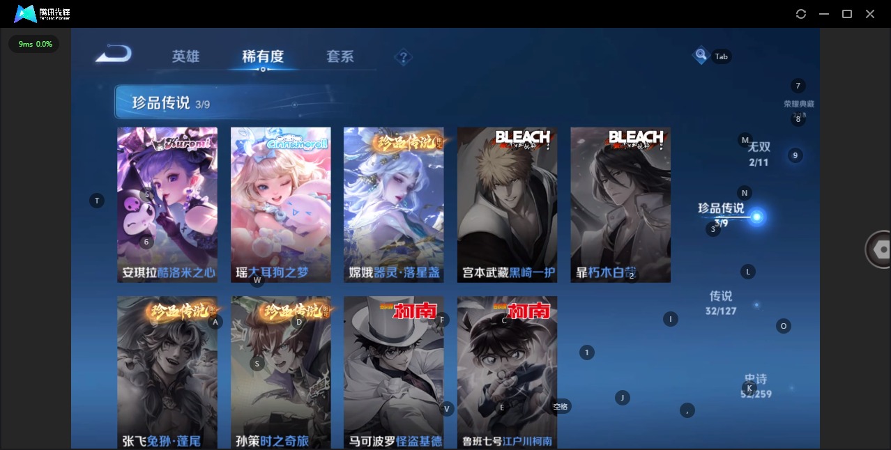 - [12283790]V7 1典藏 5传说 125英雄 206皮肤 可修改实名 优质装备:鸣剑·曳影,碎云,妄想实况 珍宝阁皮:妄想食味,蔷薇恋人 限定皮:鸣野蒿,傲雪梅枪,时雨天司(水龙头),遇见飞天,高山流水,五谷丰年,梁祝,天狼溯光者,李小龙,孙行者,乒乒小将,寅虎·瑞焰(虎皮蛋子) 史诗皮:化蝶舞,星界战将,龙之律动,电玩小子(小书包),特工魅影,偶像歌手,猫狗日记-大乔,女仆咖啡,摇滚巨星,水果甜心,星夜王子,心灵骇客,功夫厨神,暗隐猎兽者,幽灵船长,鬼剑武藏,心灵战警,天秀·启明,地狱岩魂,拒霜思,乘风破浪,逐浪之夏,水晶猎龙者,金属风暴,圣诞狂欢,圣诞恋歌,鹰眼统帅,暗夜贵公子,魅力维加斯,黎明之约,赏金猎手,无心,未来纪元-赵云