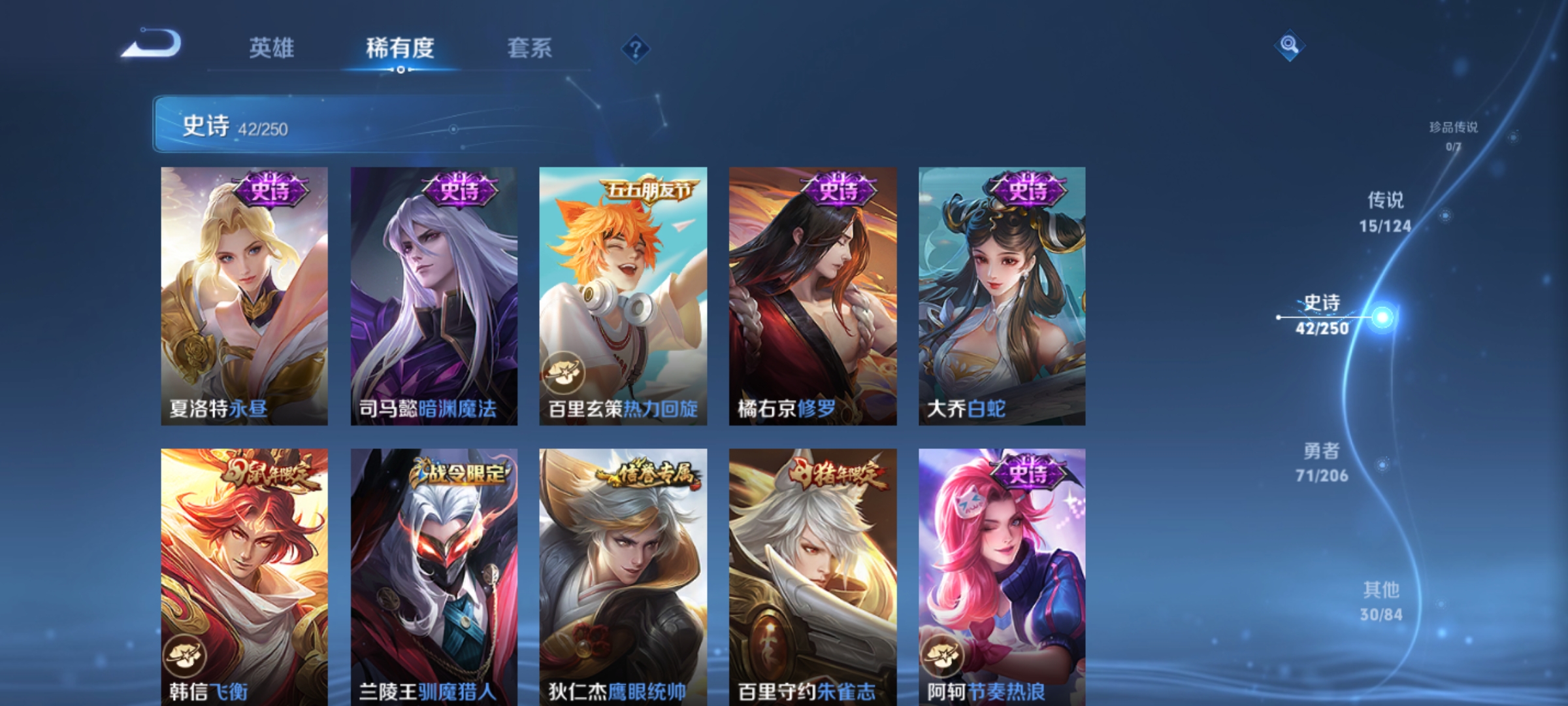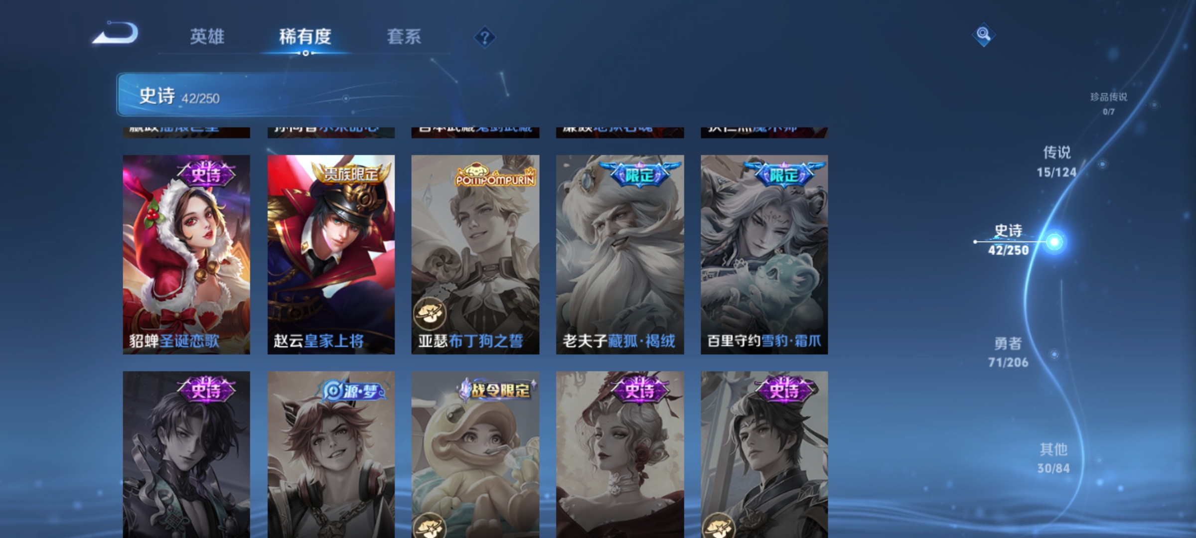 - [12462698]【商品标题】:安卓Q-V0-荣耀黄金II段位-121英雄-209皮肤-1典藏-0珍品无双-0无双-0珍品传说-4传说-56史诗 【荣耀典藏】:孙悟空全息碎影 【传说皮肤】:虞姬云霓雀翎,李白凤求凰,孙尚香末日机甲,孙悟空地狱火 【限定皮肤】:白起狰,姜子牙天穹之誓,狄仁杰阴阳师,虞姬凯尔特女王,赵云皇家上将,赵云引擎之心,墨子神迹守卫,嬴政优雅恋人,鲁班七号狮舞东方,庄周蜃楼王,庄周高山流水,孙膑妖精王,扁鹊炼金王,芈月重明,周瑜赤莲之焰,元歌云间偶戏,夏侯惇朔风刀,曹操烛龙,典韦穷奇,马可波罗逐梦之星,马可波罗暗影游猎,狄仁杰魔术师,狄仁杰万华元夜,达摩星际陆战队,达摩沙漠行僧,项羽海滩派对,老夫子醍醐杖,老夫子航海奇遇记,关羽冰锋战神,安琪拉魔法小厨娘,程咬金演武夺筹,韩信逐梦之影,韩信飞衡,兰陵王驯魔猎人,兰陵王金庭之子,亚瑟潮玩骑士王,孙悟空美猴王,孙悟空至尊宝,孙悟空孙行者,牛魔御旌,李元芳云中旅人,钟馗神迹守卫,钟馗驱傩正仪,雅典娜黎明之约,蔡文姬繁星吟游,太乙真人饕餮,鬼谷子原初探秘者,鬼谷子五谷丰年,苏烈千军破阵,百里玄策原初追逐者,百里守约朱雀志,弈星混沌棋,梦奇顽趣,沈梦溪大漠名商,明世隐疑决卦,裴擒虎李小龙,裴擒虎擒涛扼浪,狂铁御狮,米莱狄御霄,米莱狄胡桃异想国,盾山御銮,猪八戒西部大镖客,猪八戒猪悟能,上官婉儿梁祝,鲁班大师探海日志,桑启海盐诗旅,艾琳女武神,阿古朵江河有灵,张良古海寻踪,高渐离燃音魔法,妲己灵卜魔法,鬼谷子天穹祈灯,刘邦剑破天穹,周瑜熔金海岸 【年限皮肤】:百里守约朱雀志,孙悟空美猴王,李白凤求凰,韩信飞衡,马超神威 【赛季限定】:庄周蜃楼王,孙膑妖精王,扁鹊炼金王,白起狰,芈月重明,夏侯惇朔风刀,曹操烛龙,典韦穷奇,狄仁杰万华元夜,达摩沙漠行僧,老夫子醍醐杖,程咬金演武夺筹,兰陵王金庭之子,张良古海寻踪,牛魔御旌,李元芳云中旅人,虞姬凯尔特女王,钟馗驱傩正仪,雅典娜黎明之约,太乙真人饕餮,鬼谷子原初探秘者,苏烈千军破阵,百里玄策原初追逐者,弈星混沌棋,梦奇顽趣,沈梦溪大漠名商,明世隐疑决卦,裴擒虎擒涛扼浪,狂铁御狮,米莱狄御霄,盾山御銮,鲁班大师探海日志,桑启海盐诗旅,鬼谷子天穹祈灯,刘邦剑破天穹,姜子牙天穹之誓 【战令限定】:墨子神迹守卫,鲁班七号狮舞东方,周瑜赤莲之焰,元歌云间偶戏,马可波罗暗影游猎,达摩星际陆战队,