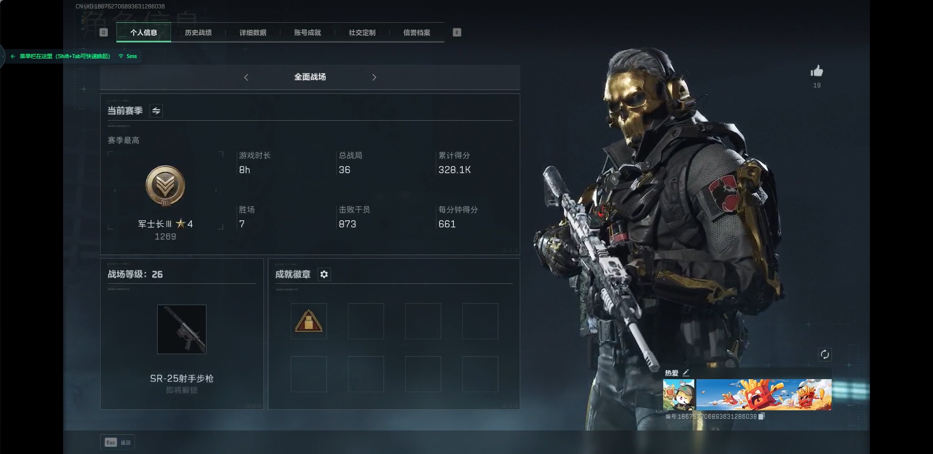 - [11294853]总资产:131.3 4传说枪械 高级安全箱(9.17到期) 可二次 可修改实名 烽火地带段位:钻石 全面战场段位:无段位 哈夫币:70.222 传说武器皮肤:QJB201轻机枪-风林火山,复合弓-黑-天际线,CAR-15突击步枪-阿米娅,725双管霰弹枪-送葬人-无题密令