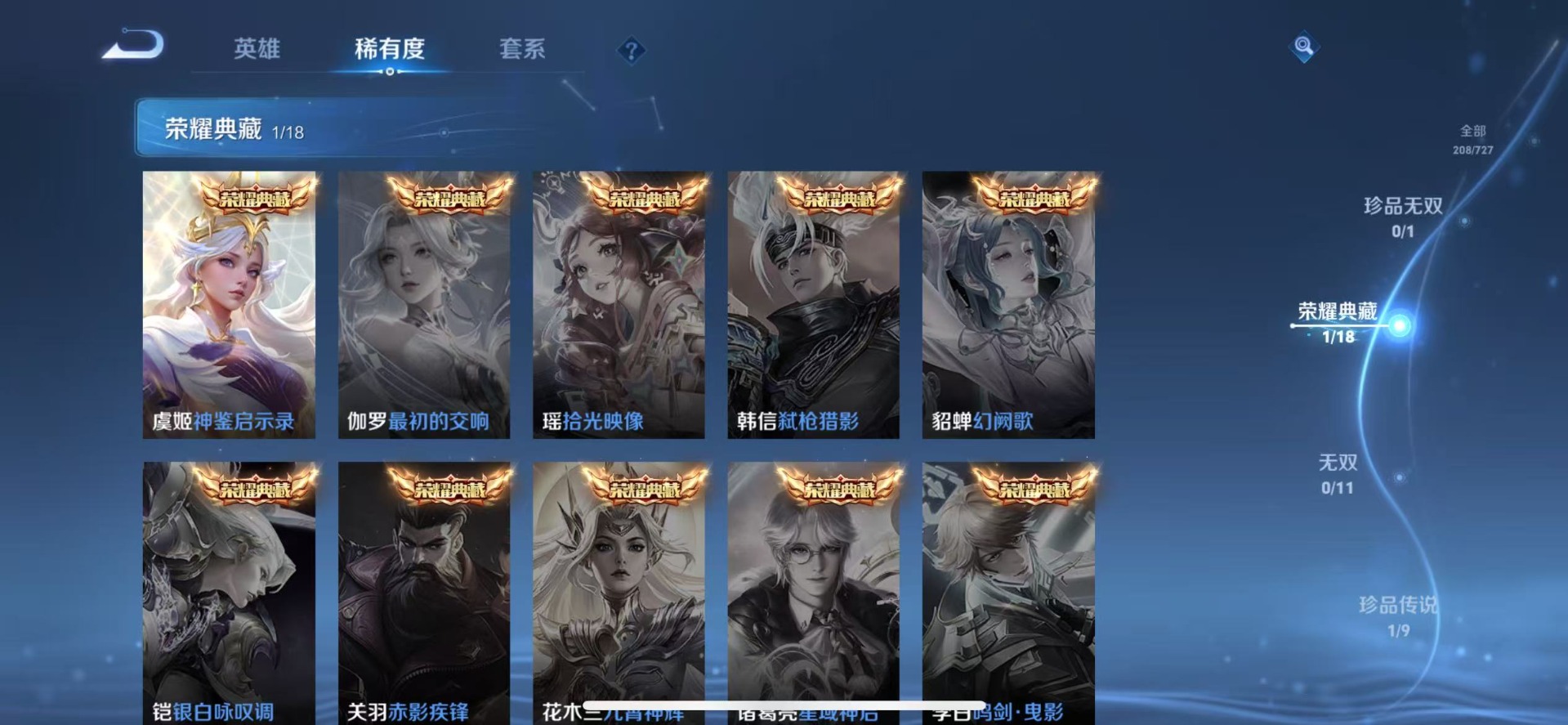 - PX_2090029-贵族7/皮肤224/传说6/史诗57/英雄124/蔷薇恋人/女武神/地狱之眼/末日机甲女/久胜战神/桑启鸣野蒿/裴擒虎祥瑞亨通/云缨幻光神枪/蒙犽顽岩魄/姜子牙天穹之誓/李白谪仙醉月/狄仁杰阴阳师/赵云皇家上将/蔷薇恋人/狮舞东方/高渐离死亡摇滚/重明/赤莲之焰/云间偶戏/元歌无心/朔风刀/烛龙/穷奇/蓝屏警告/暗影游猎/狄仁杰魔术师/万华元夜/沙漠行僧/项羽海滩派对/醍醐杖