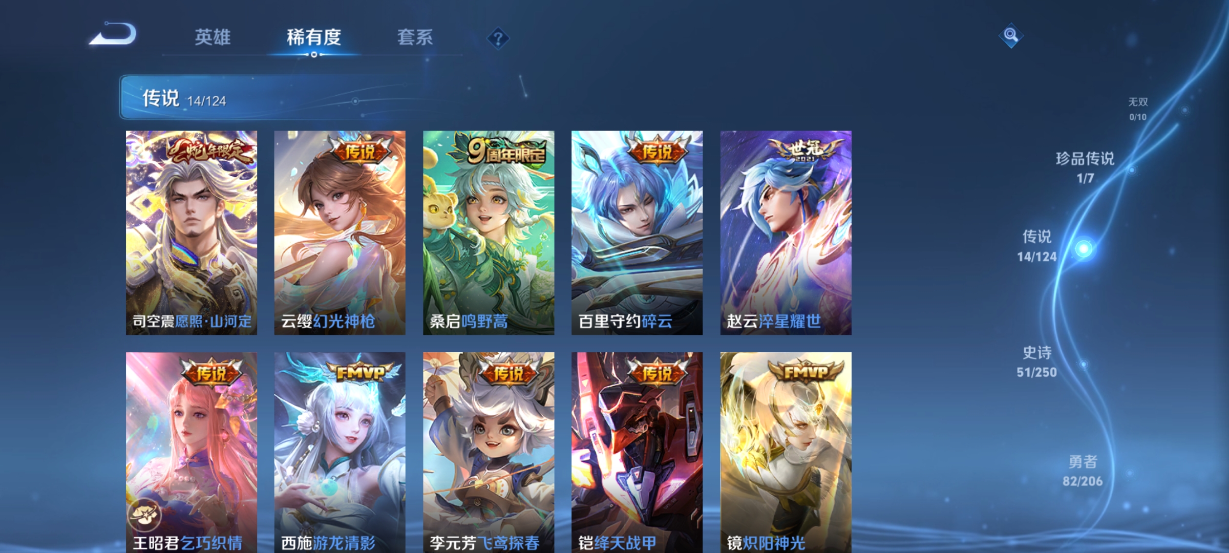 铠绛天战甲,貂蝉猫影幻舞,曜云鹰飞将,镜炽阳神光,西施游龙清影,虞姬云霓雀翎,赵云淬星耀世,刘备时之恋人,李元芳飞鸢探春,王昭君乞巧织情,百里守约碎云,云缨幻光神枪