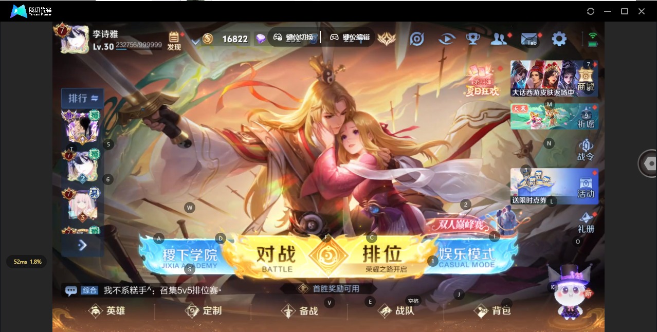 - [11471795]V7 5传说 123英雄 237皮肤 可修改实名 优质装备:冠军飞将,猫影幻舞 珍宝阁皮:优雅恋人,蔷薇恋人 限定皮:鸣野蒿,凤求凰(白切鸡),飞衡(韩信年限),遇见飞天,高山流水,齐天大圣,五谷丰年,梁祝,李小龙,猪悟能,大圣娶亲,美猴王 史诗皮:化蝶舞,龙之律动,苍穹之光,电玩小子(小书包),黄金分割率,特工魅影,千年之狐,江河有灵,百解令(蒙犽),偶像歌手,暗夜猫娘,魅语,冰冠公主,末日机甲-吕布,女仆咖啡,水果甜心,绅士熊喵,星夜王子,心灵骇客,德古拉伯爵,幽灵船长,鬼剑武藏,心灵战警,舞动绿茵,纤云弄巧,繁星吟游(呼啦呼啦),拒霜思,缤纷独角兽,乘风破浪,水晶猎龙者,曙光守护者,箭羽风息,金属风暴,圣诞恋歌,鹰眼统帅,魅力维加斯,无心