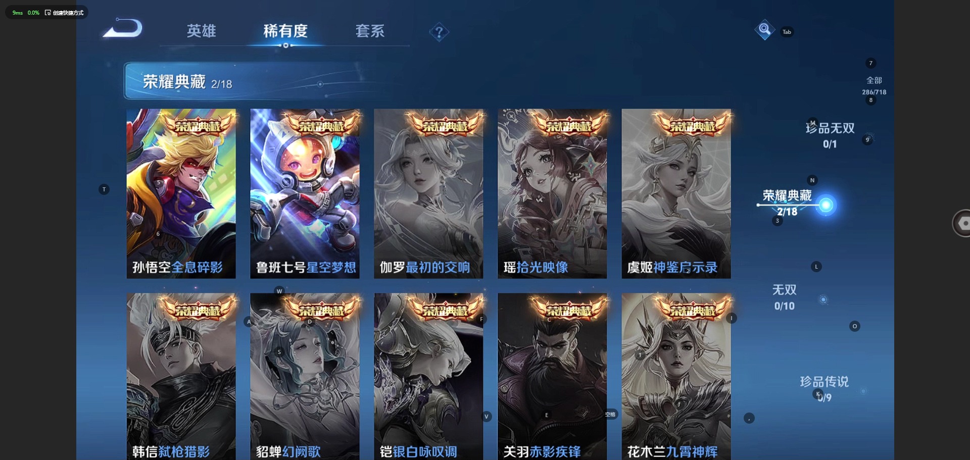 - PX_2072371-80 苹果QQ/至尊星耀/326皮肤/125英雄/1典藏/0珍品无双/0无双/4珍品传说/33传说/97史诗/9稀有英雄 【4 珍品传说】朽木白哉 暃,黑崎一护 宫本武藏,怪盗基德 马可波罗,江户川柯南 鲁班七号, 【1 典藏皮肤】九霄神辉 花木兰, 【33 传说皮肤】胖达荣荣 梦奇,启明星使 虞姬,碎云 百里守约,逐花归海 澜,电玩·雷克斯 澜,无双飞将 马超,补天 女娲,