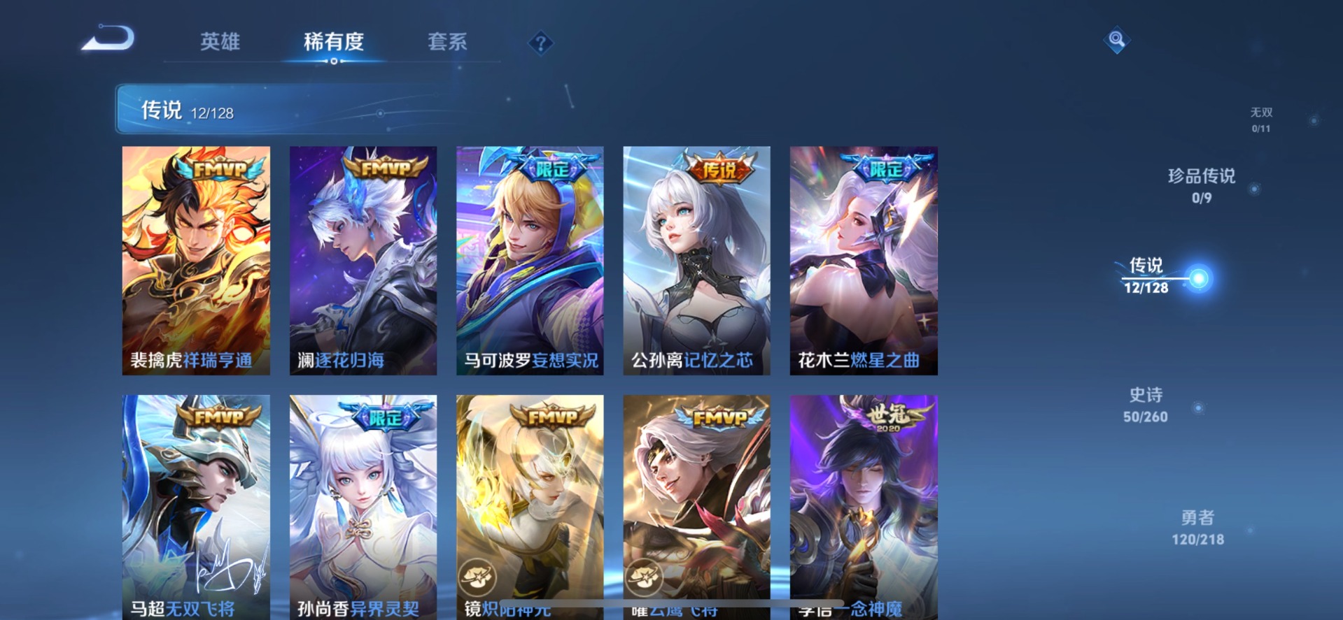 - [11515844]V6 8传说 121英雄 150皮肤 可修改实名 传说皮:星之鸣奏,黄金白羊座,仲夏夜之梦(大飞蛾),猫影幻舞,云鹰飞将(小将军) 珍宝阁皮:胡桃夹子,蔷薇恋人 限定皮:愿照·众生和(妲己年限),愿照·千秋盛(女娲年限),鸣野蒿,五谷丰年,梁祝,神器·万象笔 史诗皮:器灵·浮梦炉,百相守梦-黄忠,化蝶舞,遇见神鹿,黄金分割率,特工魅影,江河有灵,无限星赏官,魅语,猫狗日记-孙策,时之恋人-孙尚香,乱世虎臣,摇滚巨星,水果甜心,绅士熊喵,天才门将,心灵骇客,功夫厨神,德古拉伯爵,鬼剑武藏,缤纷独角兽,水晶猎龙者,金属风暴,圣诞恋歌,鹰眼统帅,魅力维加斯
