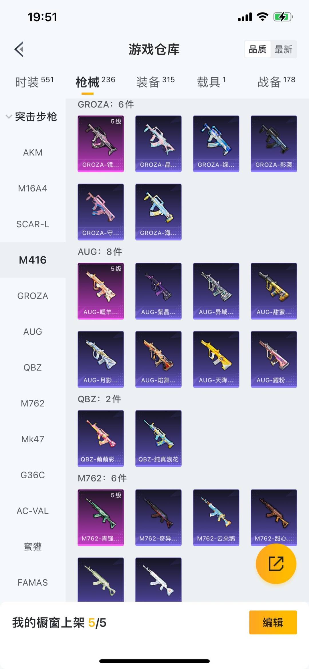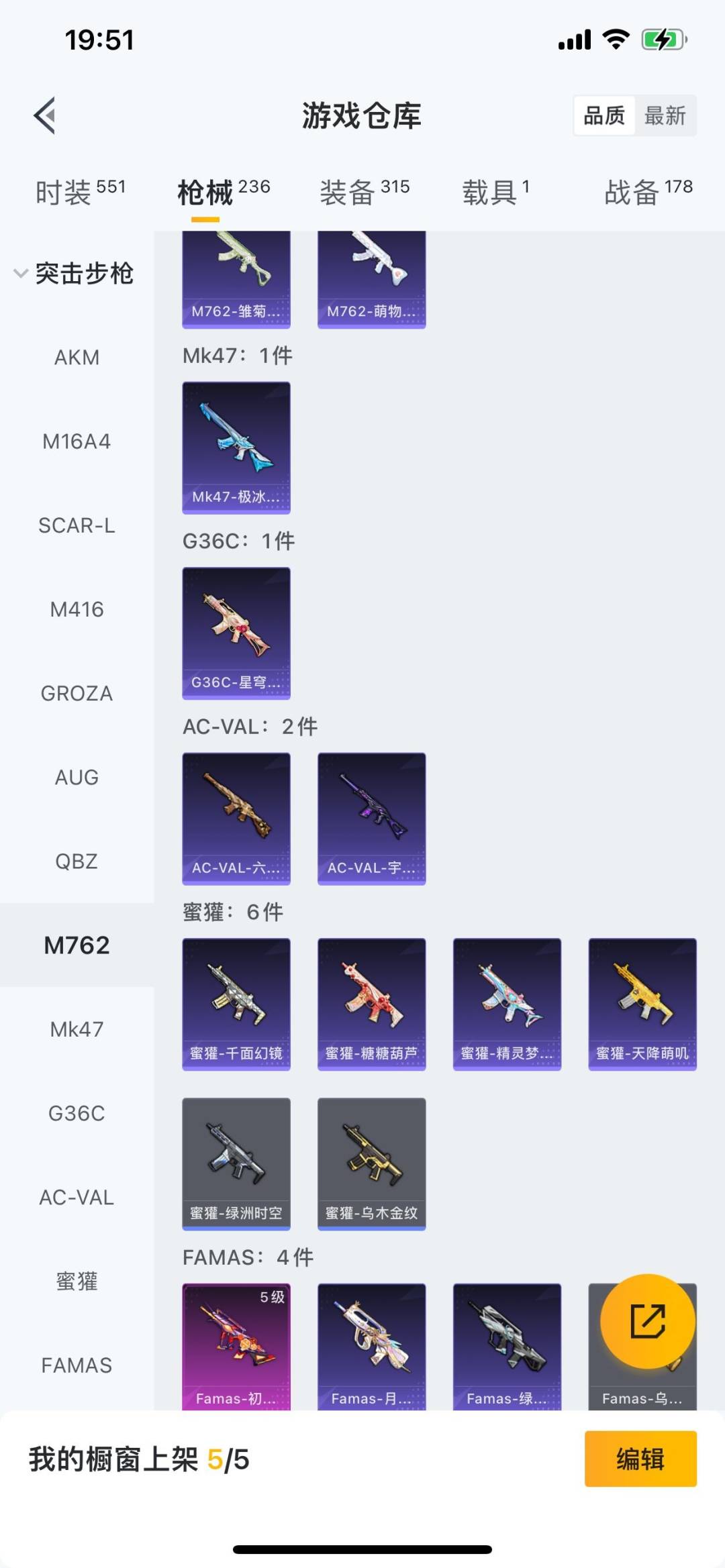 - PX_1983542-实名: 可修改 时装数: 27 载具数: 2 枪械数: 29 战备数: 31 热门装扮: 阿尔茜,炫光之旅 载具: Formula E Gen2(巅峰兰),宾利BATUR(极速紫) 稀有枪皮: M762-电糖天使