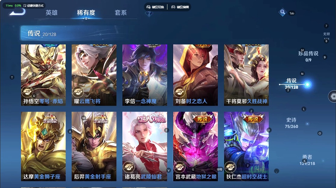 - [12315555]V7 11传说 124英雄 288皮肤 可修改实名 优质装备:云鹰飞将(小将军),猫影幻舞,久胜战神,地狱火,地狱之眼,无双飞将,澜逐花归海 传说皮:祥瑞亨通 珍宝阁皮:妄想食味,玩趣恶龙 限定皮:愿照·九州拓(澜年限),鸣野蒿,至尊宝,白虎志(电光耗子),神威(电光马子),遇见飞天,高山流水,五谷丰年,游园惊梦,梁祝,逐梦之星,李小龙,逐梦之影,朱雀志(守约年限),霸王别姬-项羽,乒乒小将,蜜橘之夏 史诗皮:化蝶舞,星界战将,石田雨龙,怒海争锋,蒙犽顽岩魄,芈月浮光幕影,琥珀纪元伽罗,蔬乡物语(鲁班七号),百相守梦-黄忠,紫霞仙子,电玩小子(小书包),白龙吟,黄金分割率,特工魅影,千年之狐,江河有灵,百解令(蒙犽),蒙恬荣光圣徽,无限星赏官,冰冠公主,青蛇,偶像歌手,晚萤,电玩·爆裂旋风,猫狗日记-孙策,猫狗日记-大乔,时之恋人-孙尚香,乱世虎臣,节奏热浪,修罗,女仆咖啡,摇滚巨星,水果甜心,绅士熊喵,星夜王子,心灵骇客,暗隐猎兽者,幽灵船长,鬼剑武藏,舞动绿茵,纤云弄巧,繁星吟游(呼啦呼啦),拒霜思,缤纷独角兽,逐浪之夏,水晶猎龙者,曙光守护者,金属风暴,原初追逐者,圣诞狂欢,鹰眼统帅,黎明之约,无心
