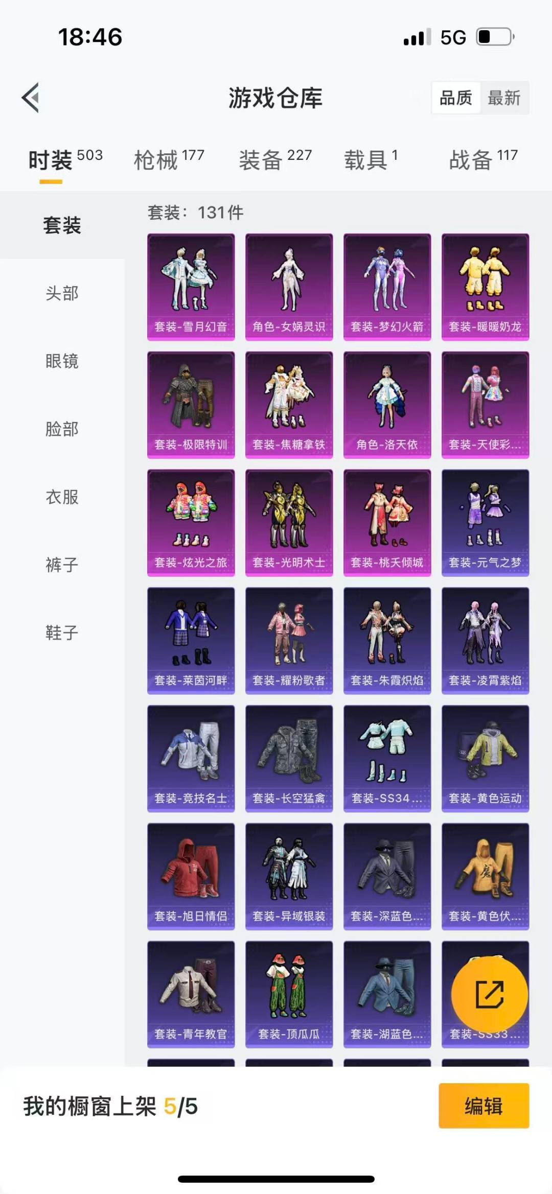 [11526968]11粉装 5特效枪 1载具 8印记 可二次 可修改实名 身法装备:赤蝎幽灵,都市猎人,舞王派对(派对舞王、小金鞋),暗影哥特(红眼罩) 优质装备:永恒黄蜂,舞王派对(派对舞王、小金鞋),赤蝎幽灵,都市猎人,梦幻火箭(新101)(新火箭少女101粉色套装),极限特训,天使彩虹糖,M416风花雪月,洛天依,M762苔丝玫瑰,SCAR-L-锦绣绵绵,七级M762-苔丝玫瑰,七级M416-风花雪月,女娲灵识,雪月幻音,Kar98K-巳巳如意 热门装扮:焦糖拿铁,桃夭倾城,光明术士,炫光之旅,暖暖奶龙,迅捷狂鲨,鹰眼刺客,呆萌铁蟹,深海小丑鱼,东方飞龙,都市猎人,派对舞王(小金鞋),赤蝎幽灵 稀有枪皮:DP-28-豹影疾电 五级特效枪:五级Kar98K-巳巳如意,五级DP-28-豹影疾电,五级SCAR-L-锦绣绵绵 紫色装扮:星夜迷魅,琉璃情波,田园牧歌,轻风白浪,SS22特训,莱茵河畔,SS23特训,幻彩翩翩,娇憨猪猪,萌趣咩咩,SS21特训,极光玫瑰,艾菲玫瑰,绚烂繁星,SS31特训套装,千禧之恋,旭日情侣,SS33特训套装,青涩时光,顶瓜瓜,冰爽风暴,音速流光,SS19特训,吉莉礼服,电音精灵,瑞龙福将,团圆交子,SS17特训,魔力冰咖,异彩先驱,SS18特训,都市漫游者,长空猛禽,雪鹰学院,霓虹极客,霓虹街区,青年教官,迎春赐吉,缤纷果语,魅力单车,麻辣教官,黄色伏地魔,黄色运动,黑色伏地魔,龙的传人,龟仙人,龙魂突击队,极地朋克,海岛探路者,深蓝色名流,夏日倾情,湖蓝色名流,绮丽涂鸦,空岛之星,空投萌叽,王牌教练,牛气冲天,白光莹,SS28特训,卖崽青蛙,李逍遥,冰公主,异域银装,鱼渊荷华,玉兔迎春,燕燕于飞,竞技名士,暗影哥特(红眼罩),深海梦境,惊鸿侠骨,SS25特训,金戈铁马,锦衣飞扬,焰鹰斗篷,幻羽潜行,幽夜迷踪,SS27特训,无暇誓言,金羽特工,浪漫天命,日照花林,SS26特训,春光漫游,快闪甜心,贝斯之夜,智谋强哥,晶辉守护,摩艾涂鸦,奇趣章鱼,星谷精灵,耀粉歌者,粉恋花,蓝冰羽,紫幽梦,SS32特训服(SS32特训套装),瑰梦爱神,绯格组合,蜜桃派对,新风雅兰,恋语绒绒,漫步者,冷酷挑战者,冰冻风暴,弄潮海豚,光之冒险 优质战备:圣堂之誓降落伞,萌物绒绒飞行器,鬼刀降落伞,金蛇镇世降落伞,赛博古神降落伞,智耀战神降落伞,樱桃泡泡降落伞,极限特训降落