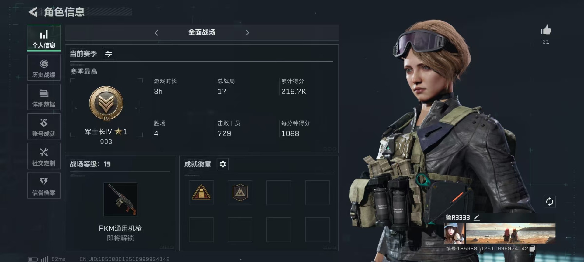 - PX_2101435-?/枪械5/装备140/载具1/战备78/王牌印记6/热力值43960/五级AKM-星际浪客/五级SCAR-L-纯梦嫁纱/三级Kar98K-巳巳如意/三级Mk14-盛世惊鸿/五级MG3-洛神天依/一级盛世惊鸿-云鸾/盛世惊鸿-云鸾/玛莎拉蒂Q蓝色/金曜白虎/纯珍童话/心之回忆/歌者泠鸢/寒光使者/赤焰黑爵/青空秋雨/呆萌星弥/小可学妹/白勺歌姬/挚爱序曲/启明星/AKM-星际
