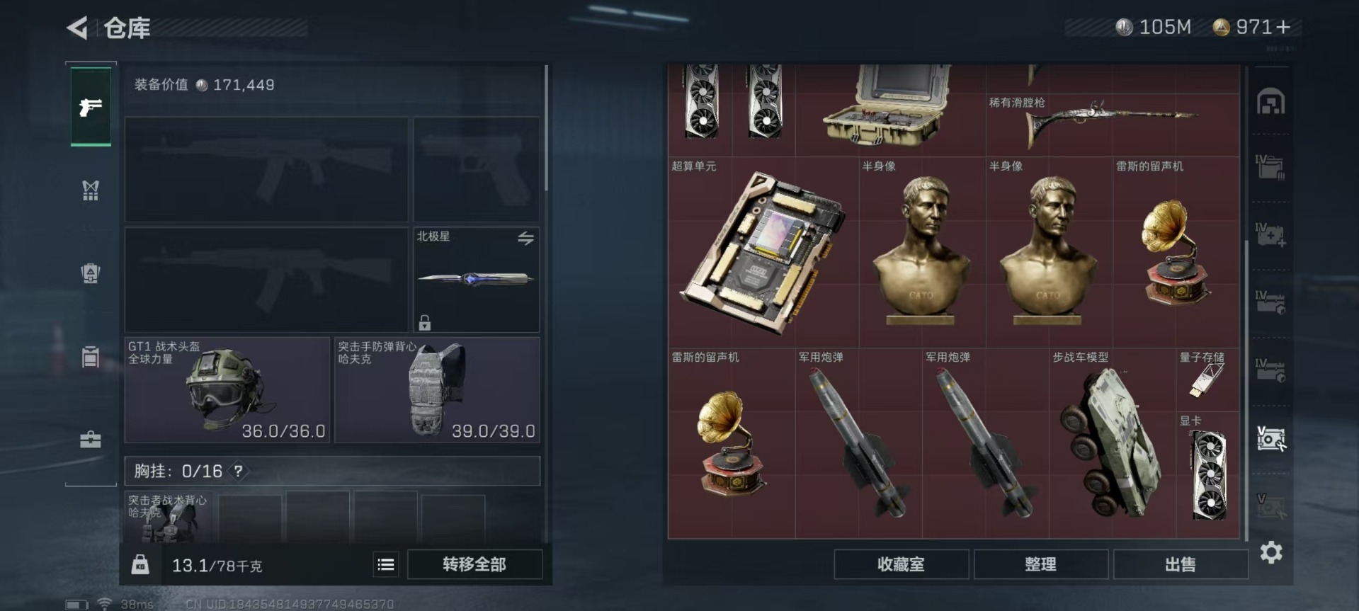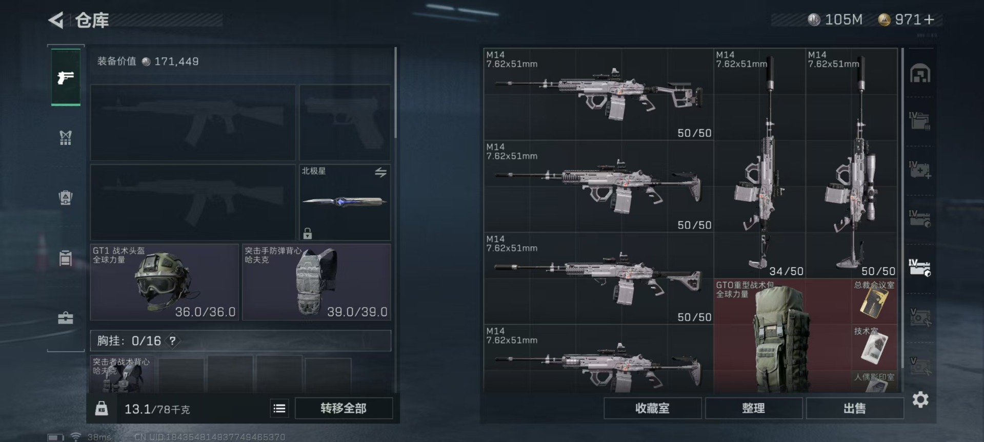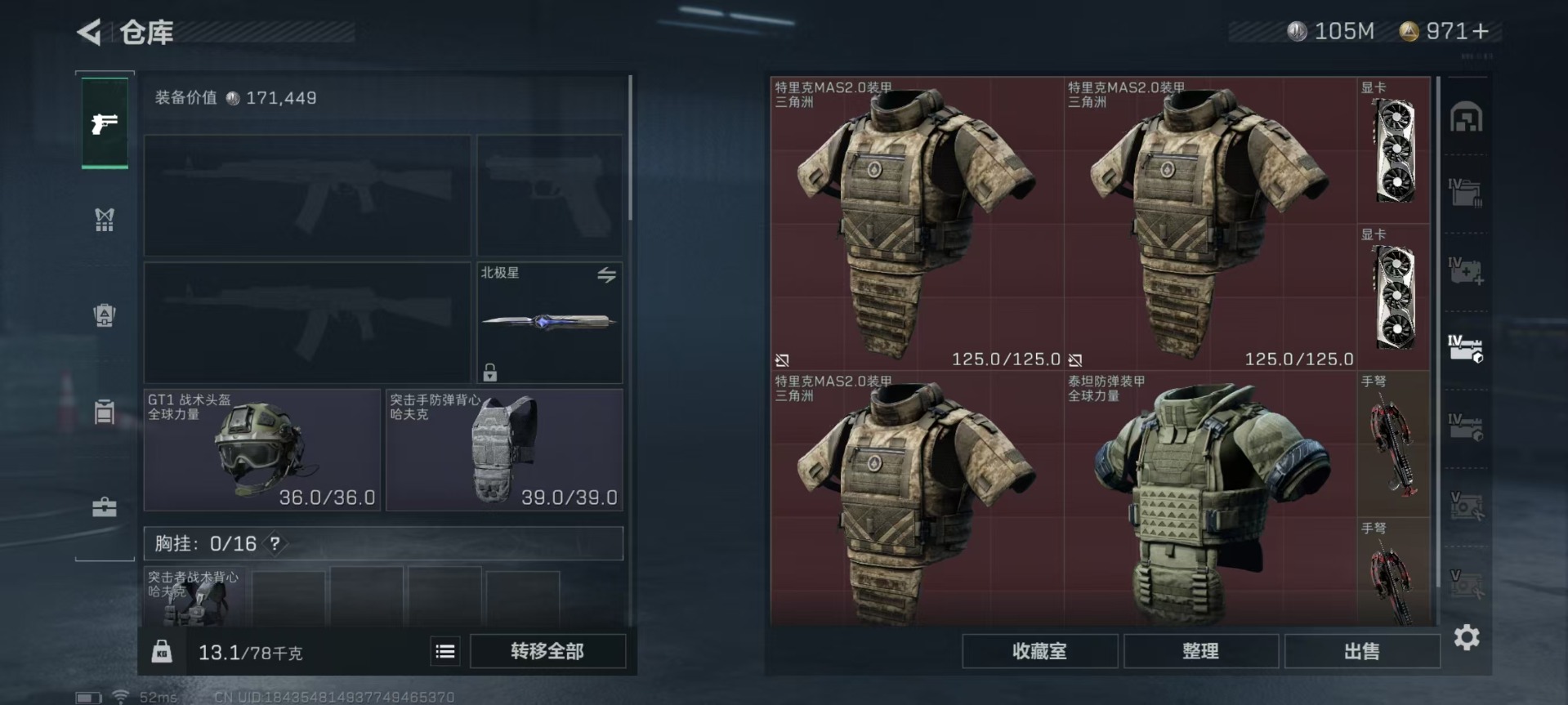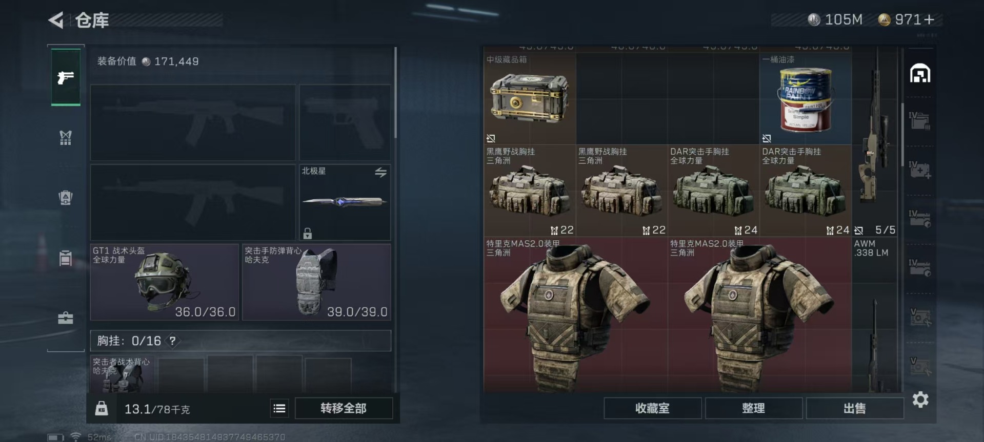 - [12090957]总资产:172.8M 2干员外观 2近战传说 24传说枪械 哈夫币:648.668K 顶级安全箱(3×3)9.15号到期 可二次 可修改实名 优质装备:近战-影锋,近战-北极星,腾龙突击步枪-气象感应(典藏),顶级安全箱(3x3) 烽火地带段位:三角洲巅峰 全面战场段位:无段位 传说武器皮肤:SCAR-H战斗步枪-铁艺苍穹,AK-12突击步枪-夜鹰,SMG45冲锋枪-骑士,K437突击步枪-极速狂飙,G18-飞虎,93R-捞点薯条,AWM狙击步枪-捞点薯条,腾龙突击步枪-捞点薯条,AK-12突击步枪-特斯拉线圈,CAR-15突击步枪-阿米娅,SR-3M紧凑突击步枪-特斯拉线圈,UZI冲锋枪-特斯拉线圈,勇士冲锋枪-能天使-午夜邮差,Vector冲锋枪-能天使-午夜邮差,复合弓-黑-天际线,M4A1突击步枪-阿米娅,M14射手步枪-工业审判,725双管霰弹枪-送葬人-无题密令,K437突击步枪-北极星,QCQ171冲锋枪-北极星,M4A1突击步枪-蚀金玫瑰 史诗武器皮肤:勇士冲锋枪-私人定制(典藏),SMG-45冲锋枪-飓风行动,QBZ95-1突击步枪-ACE,M4A1突击步枪-特勤执行,AUG突击步枪-特勤执行,Vector冲锋枪-红色彗星,PTR-32战斗步枪-ACE,SKS射手步枪-ACE,M700狙击步枪-蝮蛇,PKM通用机枪-蝮蛇,Ash-12战斗步枪-守夜人,M16A4突击步枪-竞赛选手,PKM通用机枪-守夜人,AS Val突击步枪-尖端治疗,M700狙击步枪-守夜人,SG552突击步枪-尖端治疗,SR-25射手步枪-尖端治疗,PKM通用机枪-荒野求生,MP5冲锋枪-深海恐惧,勇士冲锋枪-深海恐惧,SG552突击步枪-深海恐惧,AKM突击步枪-林中猎手,.357左轮-幸运时刻,SR-3M紧凑突击步枪-荒野求生,M1014霰弹枪-林中猎手,SV-98狙击步枪-林中猎手,PTR-32突击步枪-英雄,SVD狙击步枪-荒野求生,AS Val突击步枪-典狱官,M250通用机枪-囚徒,腾龙突击步枪-无垢,MP7冲锋枪-无垢,PSG-1射手步枪-无垢,M14射手步枪-禁卫,QBZ95-1突击步枪-曙光,沙漠之鹰-曙光,Vector冲锋枪-阿萨拉文明,SVD狙击步枪-阿萨拉工艺,S12K霰弹枪-曙光,M7战斗步枪-禁卫 干员外观:红狼-蚀金玫瑰,露娜-黑·天际线