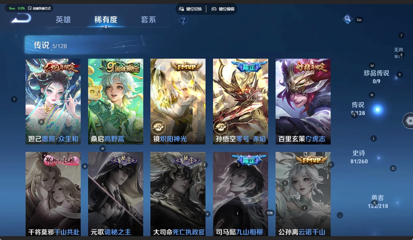 - [11604674]V10 6典藏 1无双 50传说 123英雄 448皮肤 典藏英雄武则天 可修改实名 优质装备:天鹅之梦(小乔典藏),星空梦想(太空人),倪克斯神谕(宇宙婆娘),无限飓风号(高达),杀手不太冷,全息碎影(猴子典藏),碎月剑心(李白无双),黄金狮子座,黄金射手座,冠军飞将,云鹰飞将(小将军),绛天战甲(鸡嘴战神),黄金白羊座,猫影幻舞,久胜战神,炽阳神光,一念神魔,云霓雀翎,末日机甲-孙尚香(绿蚂蚱),地狱火,仲夏夜之梦(大飞蛾),音你心动-小乔,零号·赤焰,海洋之心,地狱之眼,飞鸢探春,音你心动-周瑜,胖达荣荣,李逍遥,乞巧织情,时之恋人-刘备(电焊工),游龙清影(小青龙),淬星耀世,超时空战士-狄仁杰,遇见胡旋,音你闪耀(rap皮),霜月吟,澜逐花归海,艾琳觅芳踪,琥珀纪元铠,琥珀纪元马超 珍宝阁皮:蔷薇恋人,女武神 限定皮:至尊宝,白虎志(电光耗子),凤求凰(白切鸡),凤凰于飞,太华(伽罗年限),梅西,武陵仙君(小桃花),异界灵契(白毛香),傲雪梅枪,补天,星穹之声,绯月行,时之彼端,白鹤梁神女,魔法小厨娘,白晶晶,时雨天司(水龙头),神威(电光马子),飞衡(韩信年限),玄嵩(庄周年限),瑞麟志(木兰年限),遇见飞天,高山流水,五谷丰年,青龙志(铠年限),冰锋战神,幽恒(沐浴露),武圣,天狼运算者,游园惊梦,梁祝,御风骁将(吕布年限),天狼狩猎者,龙胆,逐梦之翼,逐梦之星,烈魂,岱宗(典韦年限),天狼溯光者,虎魄,逐梦之音,天狼征服者,奔雷神使(牛魔年限),祈雪灵祝(雪兔子),天狼绘梦者,李小龙,逐梦之影,逐梦之光,玄武志(苏烈年限),朱雀志(守约年限),永曜之星,辉光之辰,如梦令-嫦娥,如梦令-后羿,霸王别姬-项羽,霸王别姬-虞姬,奇迹圣诞,默契交锋-兰陵王,默契交锋-花木兰,孙行者,猪悟能,一生所爱,大圣娶亲,引擎之心,天魔缭乱,青春决赛季,冰霜恋舞曲,云端筑梦师,乒乒小将,蜜橘之夏,热情桑巴,神奇女侠,美猴王,匿光追影者,女儿国国王,时之祈愿-云中君,时之祈愿-瑶(瑶传限),玉兔公主 史诗皮:琥珀纪元伽罗,遇见神鹿,紫霞仙子,苍穹之光,电玩小子(小书包),白龙吟,黄金分割率,特工魅影,千年之狐,永昼,江河有灵,雪夜绮愿(周瑜),百解令(蒙犽),高渐离燃音魔法,蒙恬荣光圣徽,偶像歌手,龙骑士(小龙虾),白蛇,暗夜猫娘,魅语,无限星赏官,晚萤,冰冠公主,