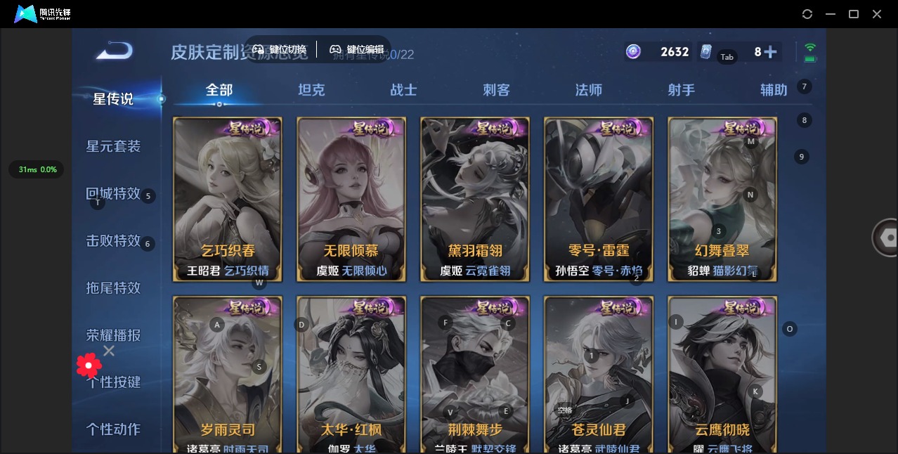 廉颇寅虎·御盾,赵云百木心枪,孙膑寅虎·展翼,鲁班七号寅虎·瑞焰,镜匿光追影者,杨玉环寅虎·心曲,公孙离玉兔公主,司空震愿照·山河定,裴擒虎李小龙,裴擒虎寅虎·赤拳,上官婉儿梁祝,马可波罗山海·玄木吟,桑启鸣野蒿,猪八戒猪悟能,孙悟空至尊宝,韩信傲雪梅枪,澜愿照·九州拓,关羽冰锋战神
