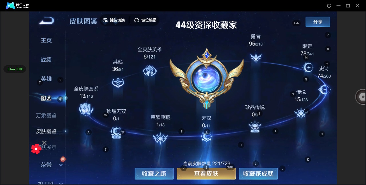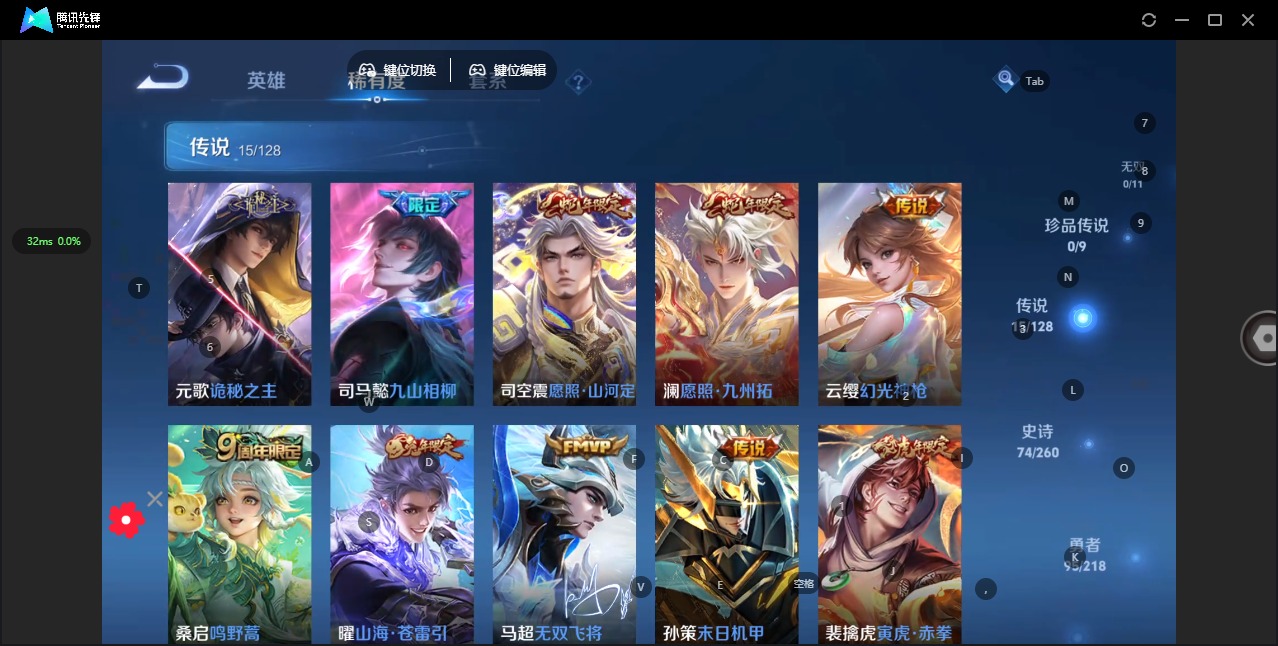 - PX_2072923-贵族等级: V4 英雄数: 66 皮肤数: 36 珍品传说: 时之奇旅-孙策 限定皮: 逐霄战戟