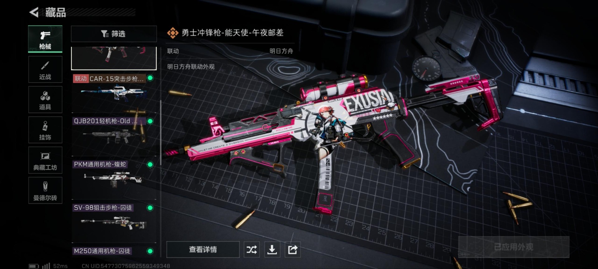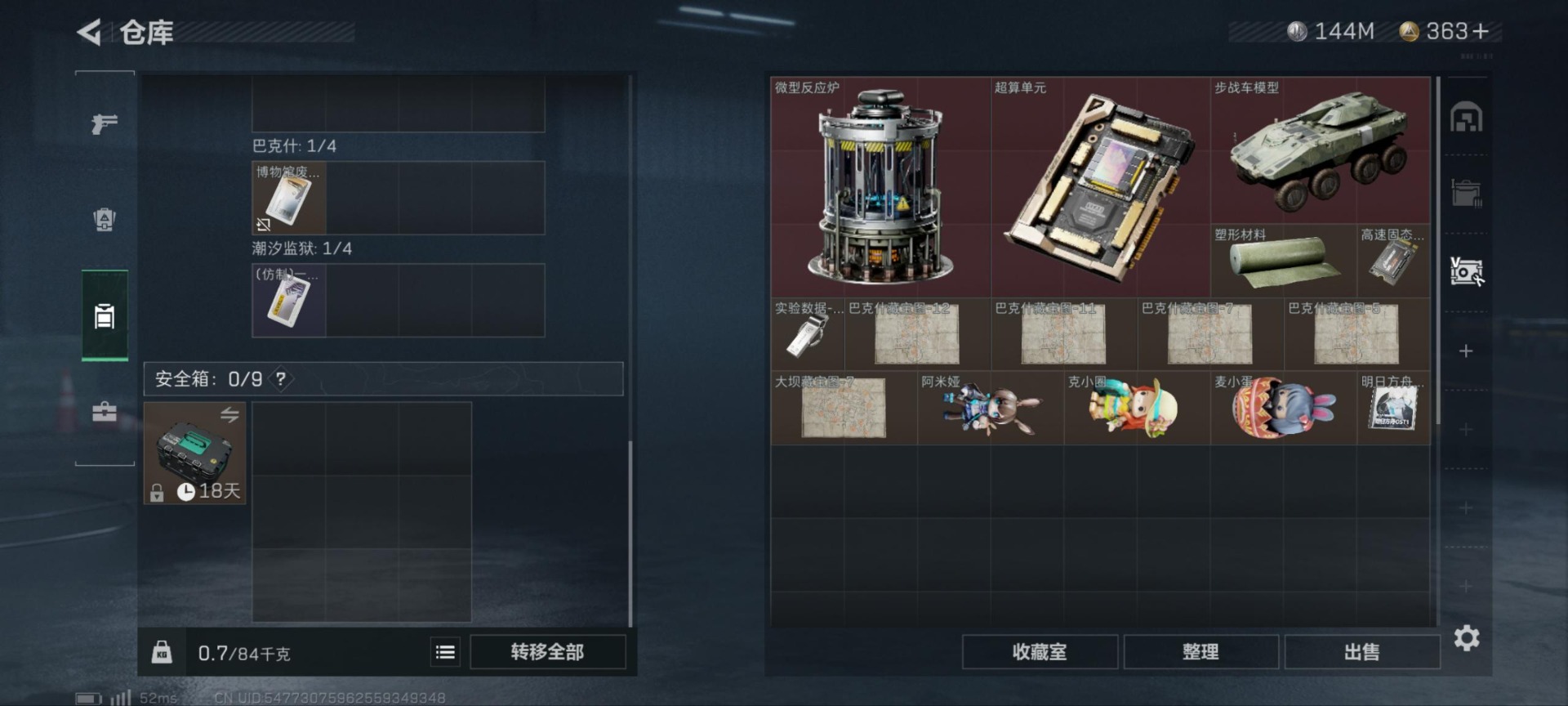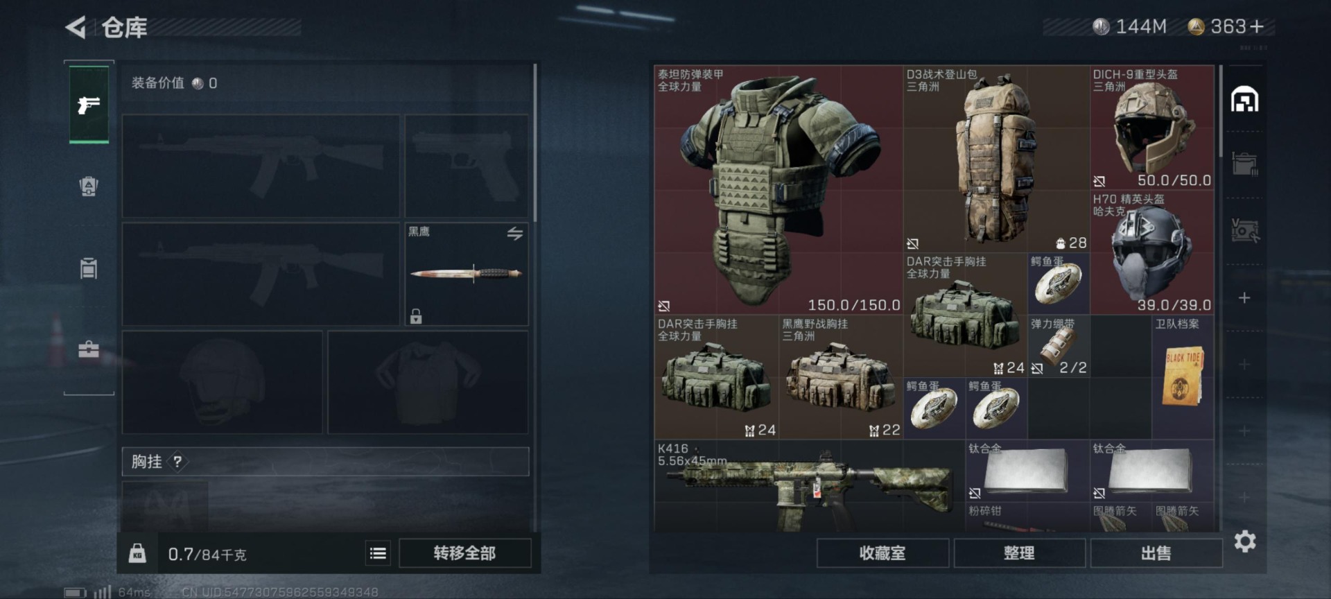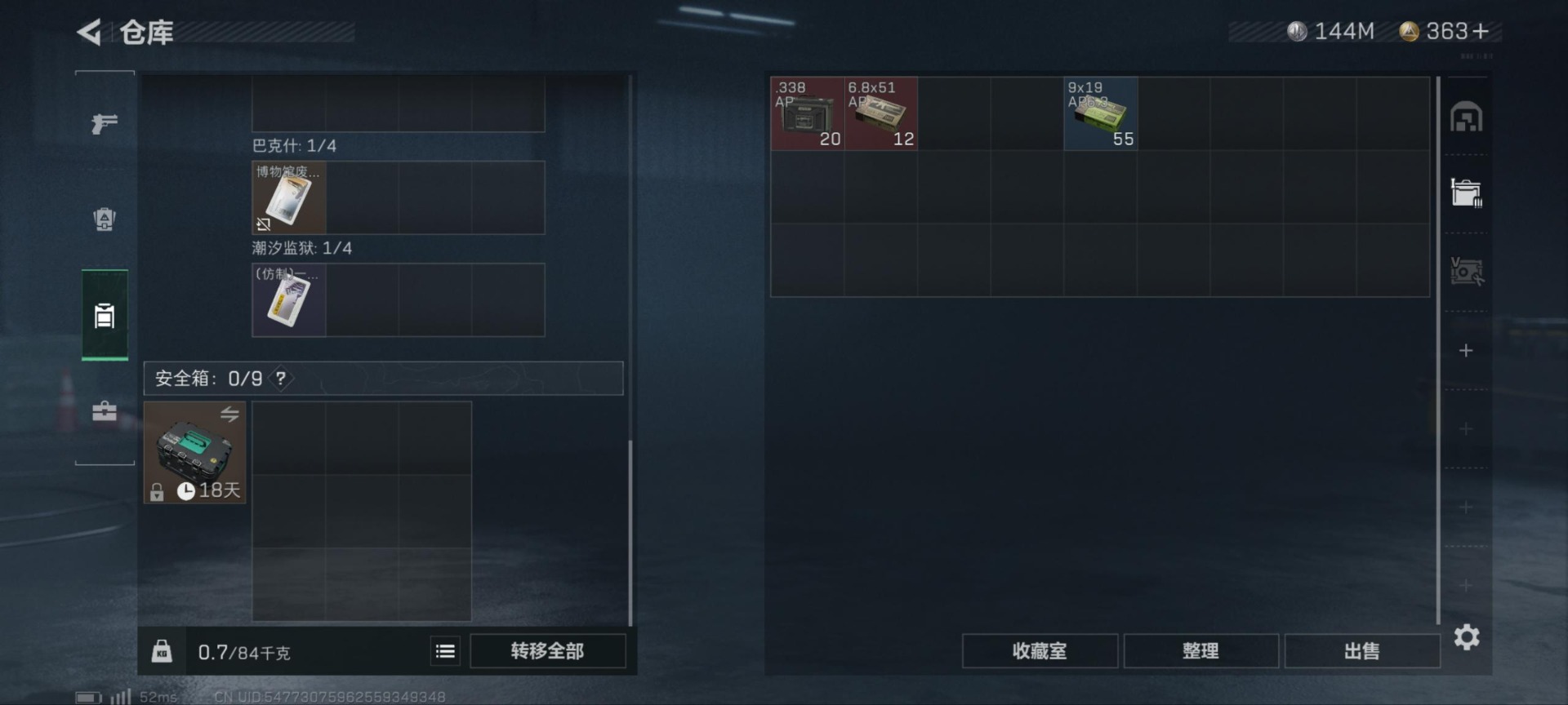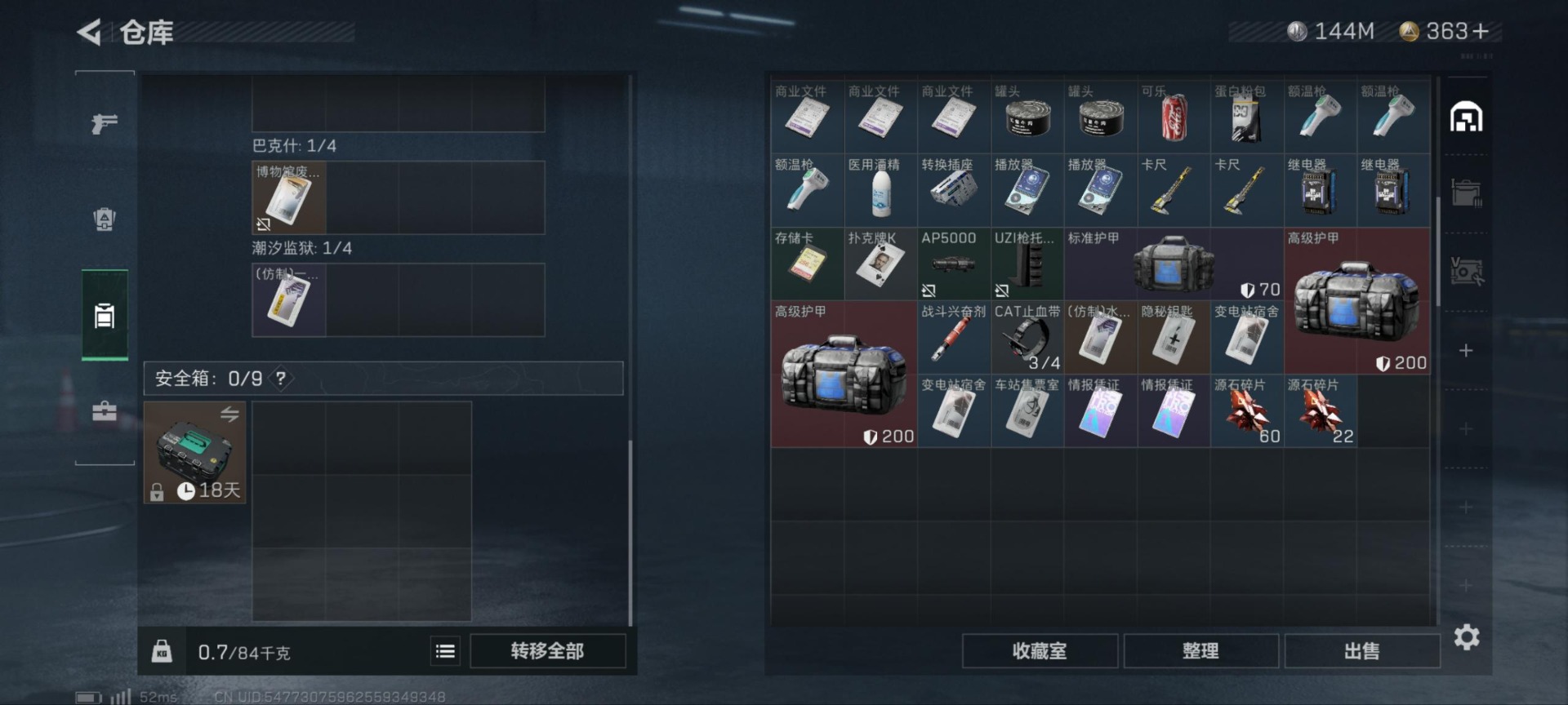 [11527396]总资产:221.8M 6传说枪械 哈夫币:144K 顶级安全箱(3×3)9.15号到期 可二次 可修改实名 优质装备:顶级安全箱(3x3) 烽火地带段位:黄金 全面战场段位:无段位 传说武器皮肤:M16A4突击步枪-狩猎时刻,M4A1突击步枪-阿米娅,CAR-15突击步枪-阿米娅,Vector冲锋枪-狩猎时刻,G3战斗步枪-狩猎时刻,勇士冲锋枪-能天使-午夜邮差 史诗武器皮肤:PKM通用机枪-蝮蛇,SG552突击步枪-深海恐惧,AKM突击步枪-林中猎手,M1014霰弹枪-林中猎手,SV-98狙击步枪-林中猎手,PTR-32突击步枪-英雄,M250通用机枪-囚徒,SV-98狙击步枪-囚徒,SCAR-H战斗步枪-囚徒,QBZ95-1突击步枪-曙光
