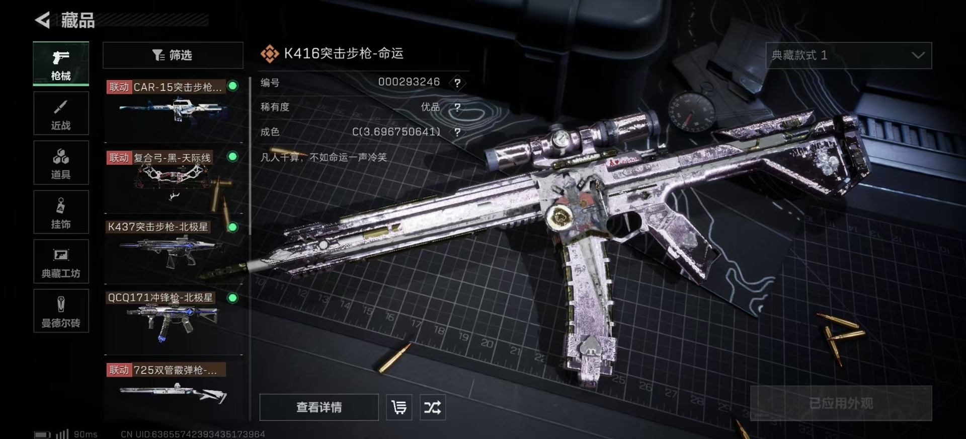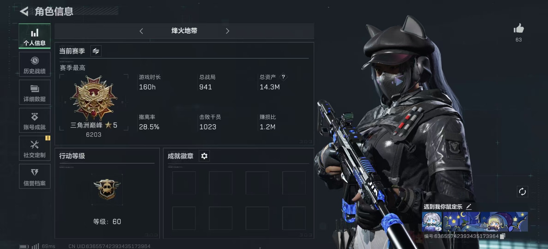 [11527486]总资产:14.3M 2干员外观 10传说枪械 哈夫币:7.857K 顶级安全箱(3x3) 9.15号到期 可二次 可修改实名 优质装备:K416突击步枪-命运(典藏),顶级安全箱(3x3) 烽火地带段位:三角洲巅峰 全面战场段位:无段位 传说武器皮肤:SCAR-H战斗步枪-水墨云图,SCAR-H战斗步枪-铁艺苍穹,AK-12突击步枪-夜鹰,SMG45冲锋枪-骑士,CAR-15突击步枪-阿米娅,复合弓-黑-天际线,725双管霰弹枪-送葬人-无题密令,K437突击步枪-北极星,QCQ171冲锋枪-北极星 干员外观:骇爪-水墨云图,露娜-黑·天际线