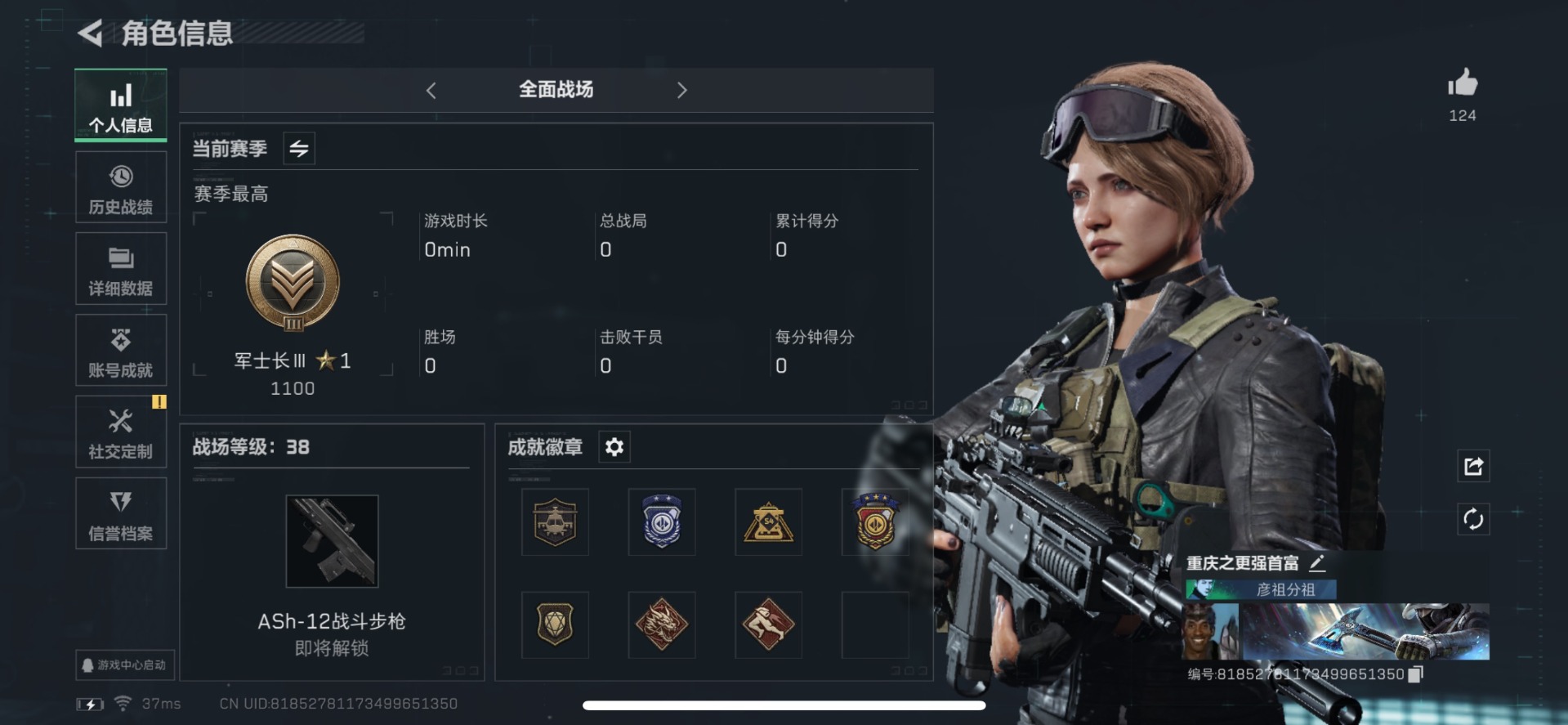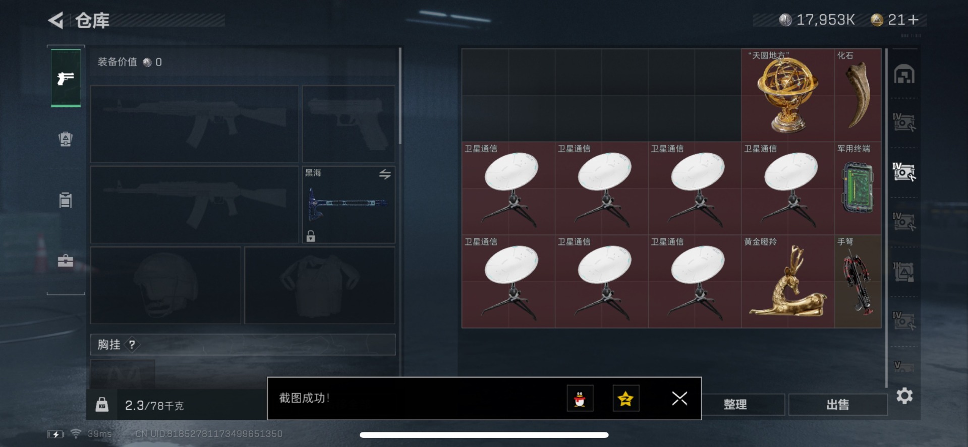 [11527607]总资产:138.9M 1干员外观 1近战传说 11传说枪械 哈夫币:17.953K 可二次 可修改实名 优质装备:近战-黑海 烽火地带段位:钻石 全面战场段位:军士长 传说武器皮肤:SR-25射手步枪-水墨云图,SCAR-H战斗步枪-水墨云图,SCAR-H战斗步枪-铁艺苍穹,AK-12突击步枪-夜鹰,SMG45冲锋枪-骑士,M4A1突击步枪-阿米娅,勇士冲锋枪-能天使-午夜邮差,MP5冲锋枪-黑海,QJB201轻机枪-黑海,CAR-15突击步枪-黑鹰坠落 干员外观:骇爪-水墨云图
