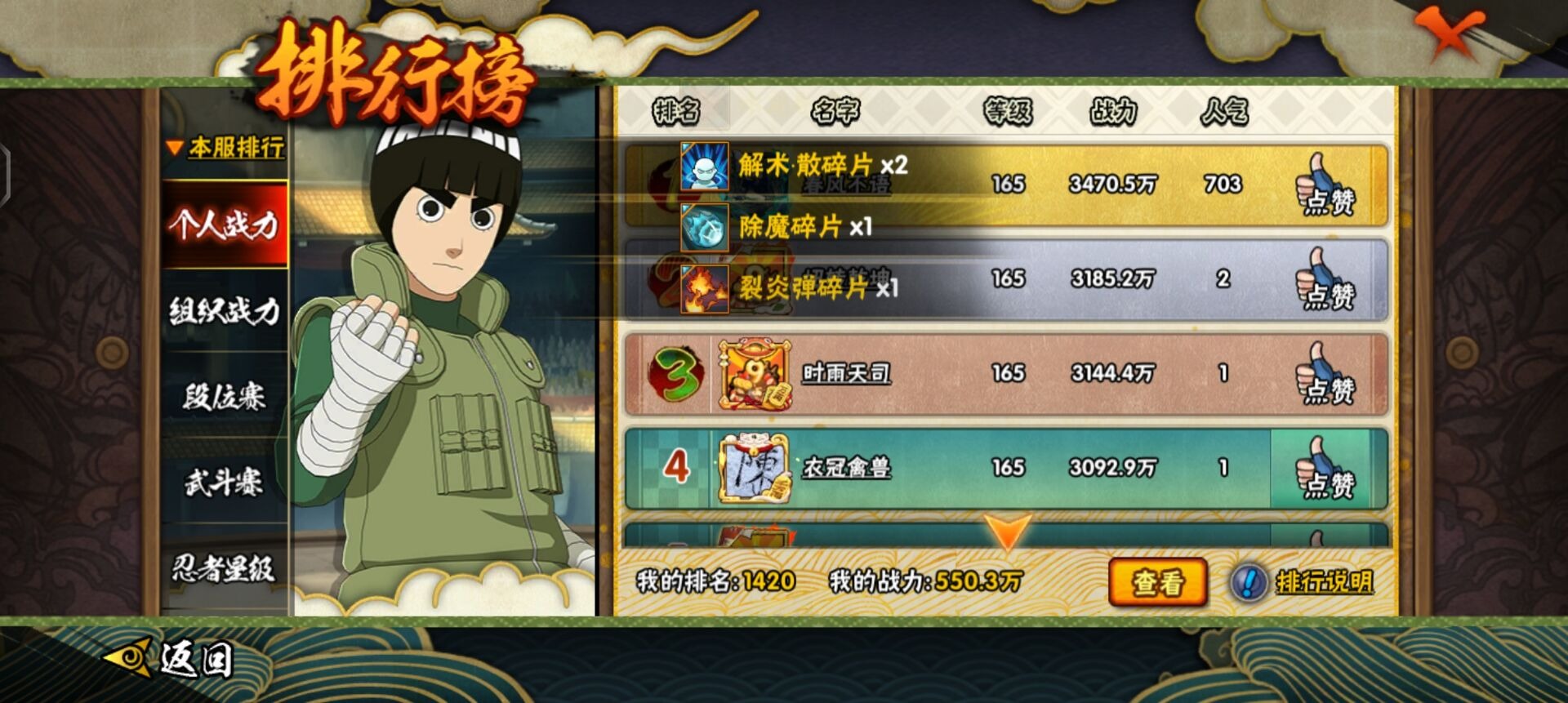[11527688]V6 12S忍 31A忍 15通灵 553.5W战力 可二次 可修改实名 优质装备:千手柱间「秽土转生」,宇智波鼬「秽土转生」,迈特凯「死门」,漩涡鸣人 「九喇嘛连结」,宇智波佐助「永恒万花筒」,旗木卡卡西「须佐能乎」,自来也 「传说中的三忍」 S级忍者:自来也 「舞之豪杰」,宇智波鼬 「须佐能乎」,佩恩「天道」,波风水门,大蛇丸