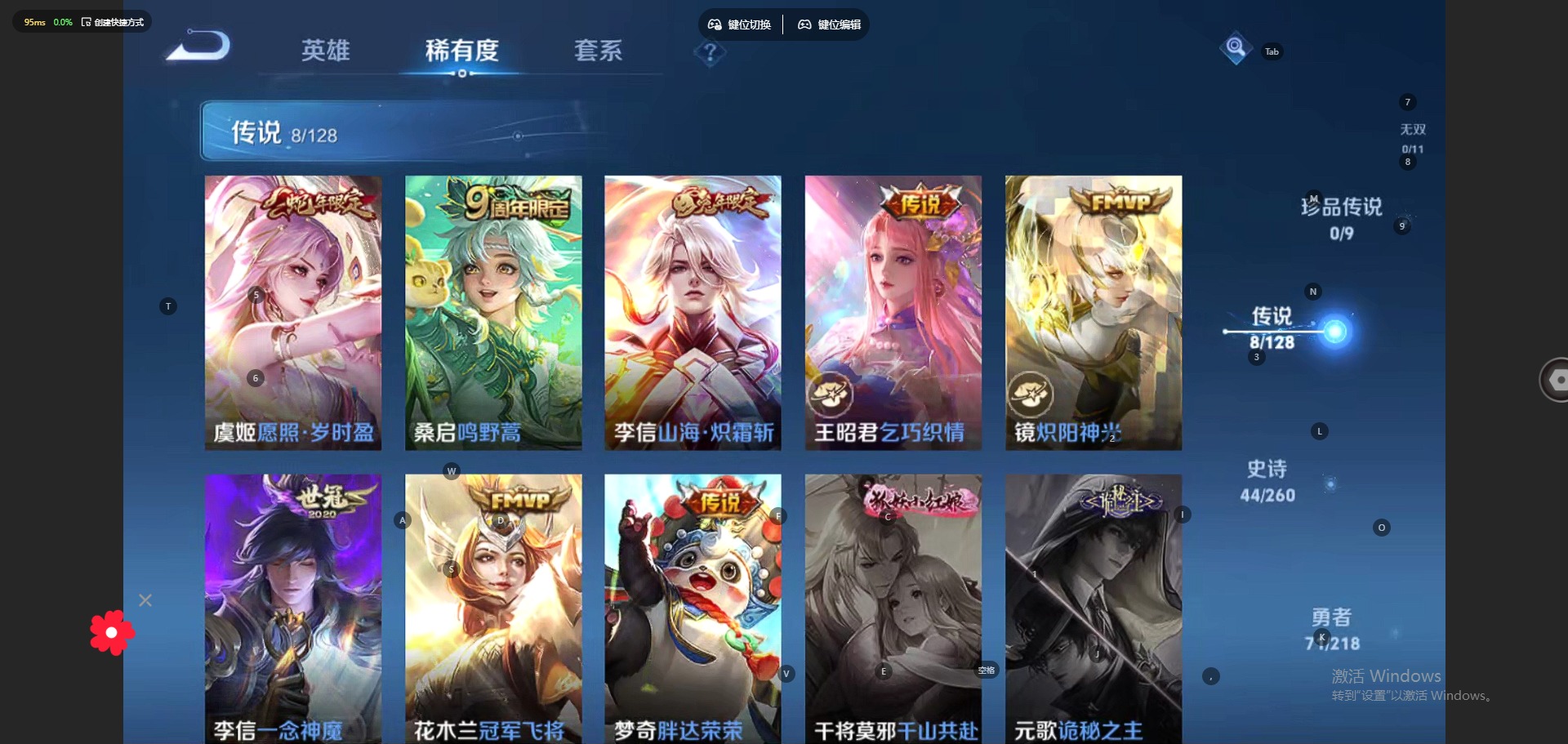 - [11680452]V9 2典藏 14传说 125英雄 260皮肤 典藏英雄武则天 可修改实名 优质装备:杀手不太冷,鸣剑·曳影,一念神魔,末日机甲-孙尚香(绿蚂蚱),地狱火,海洋之心,地狱之眼,浮生妄 传说皮:云诺千山,幻光神枪 限定皮:愿照·九州拓(澜年限),至尊宝,凤求凰(白切鸡),武陵仙君(小桃花),魔法小厨娘,五谷丰年,冰锋战神,梁祝,逐梦之星,逐梦之音,李小龙,逐梦之影,永曜之星,辉光之辰,霸王别姬-虞姬,真爱至上,纯白花嫁,引擎之心,天魔缭乱,云端筑梦师,热情桑巴 史诗皮:鸭鸭历险记-刘禅,苍鳞隐世,器灵·浮梦炉,化蝶舞,龙之律动,茶境仙,紫霞仙子,白龙吟,特工魅影,千年之狐,永昼,无限星赏官,冰冠公主,偶像歌手,晚萤,暗夜猫娘,龙骑士(小龙虾),末日机甲-吕布,猫狗日记-孙策,乱世虎臣,摇滚巨星,水果甜心,星夜王子,功夫厨神,德古拉伯爵,暗隐猎兽者,鬼剑武藏,心灵战警,地狱岩魂,缤纷独角兽,乘风破浪,逐浪之夏,水晶猎龙者,曙光守护者,箭羽风息,原初追逐者,圣诞狂欢,圣诞恋歌,鹰眼统帅,王者之锤,暗夜贵公子,魅力维加斯,赏金猎手,奇遇舞章