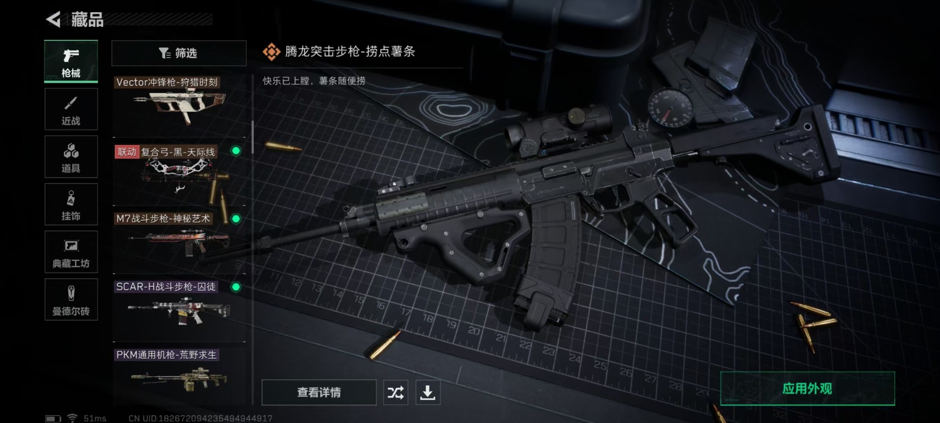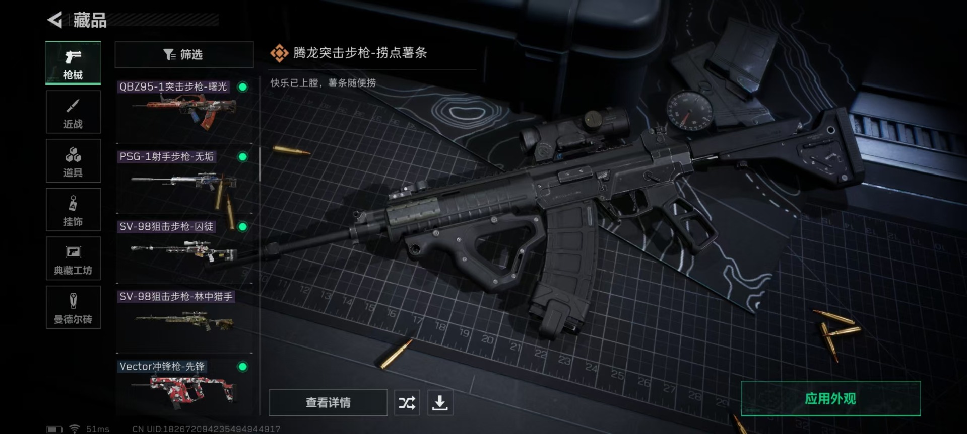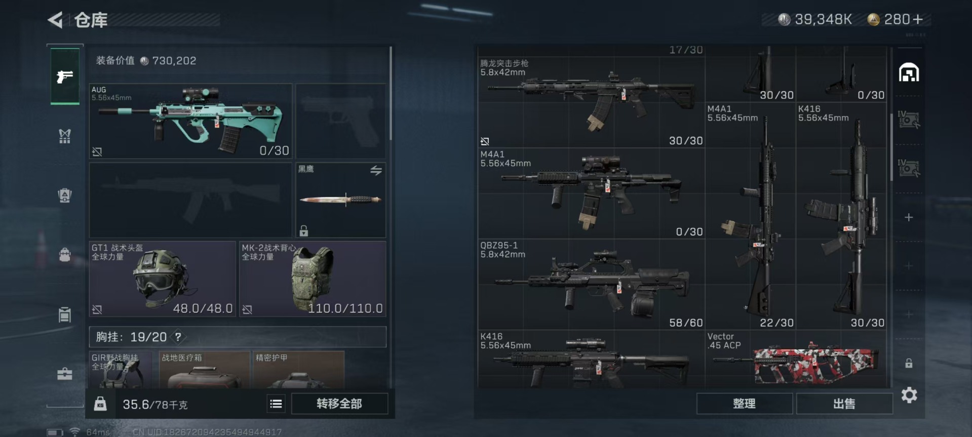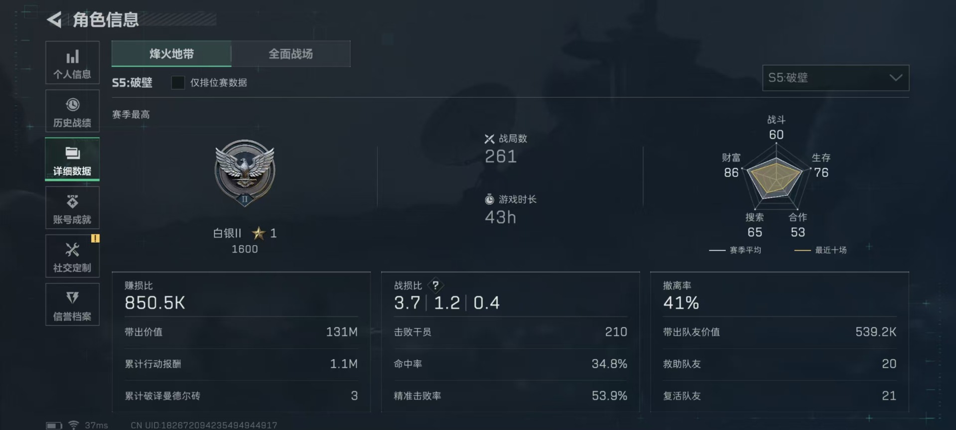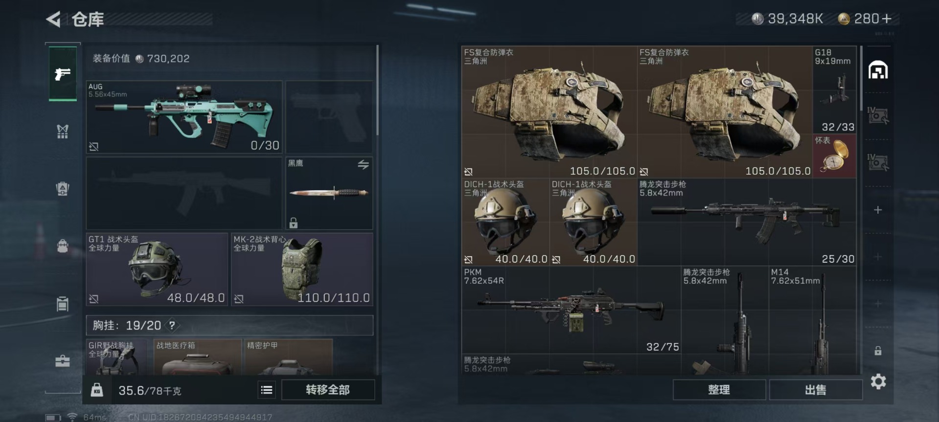 - [11524696]总资产:9 1近战传说 5传说枪械 高级安全箱(9.17到期) 可二次 可修改实名 烽火地带段位:钻石 全面战场段位:列兵 哈夫币:0 传说武器皮肤:近战-黑海,SMG45冲锋枪-骑士,QJB201轻机枪-黑海,复合弓-黑-天际线,M4A1突击步枪-蚀金玫瑰 史诗武器皮肤:QBZ95-1突击步枪-ACE,M4A1突击步枪-特勤执行,SKS射手步枪-ACE,PKM通用机枪-蝮蛇,PKM通用机枪-荒野求生,M700狙击步枪-守夜人,MP5冲锋枪-深海恐惧,勇士冲锋枪-深海恐惧,AKM突击步枪-林中猎手,SVD狙击步枪-暗夜猎手,M1014霰弹枪-林中猎手,PSG-1射手步枪-无垢,SV-98狙击步枪-囚徒,QBZ95-1突击步枪-曙光,沙漠之鹰-曙光,M700狙击步枪-竞技风