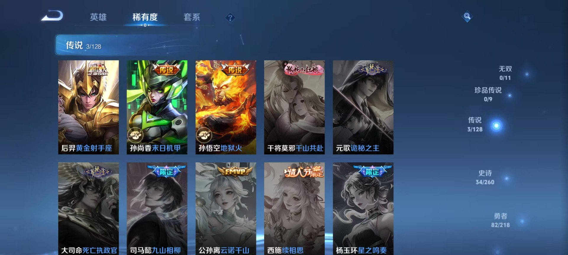 刘邦夺宝奇兵,夏侯惇朔风刀,老夫子醍醐杖,沈梦溪星空之诺,沈梦溪大漠名商,盾山御銮,曹操烛龙,苏烈千军破阵,典韦蓝屏警告,达摩沙漠行僧,牛魔御旌,兰陵王金庭之子,裴擒虎擒涛扼浪,鲁班大师探海日志,明世隐疑决卦,蒙犽狂想玩偶喵,鬼谷子原初探秘者,张良古海寻踪,女娲朔望之晖,桑启海盐诗旅,狄仁杰万华元夜,程咬金演武夺筹,李元芳银河之约,李元芳云中旅人,弈星混沌棋,钟馗神迹守卫,钟馗驱傩正仪,狂铁御狮