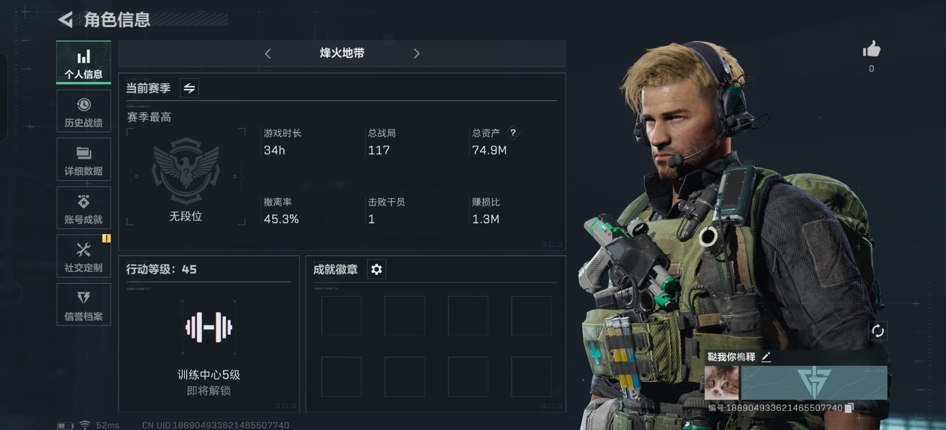 [11528028]总资产:74.9M 2传说枪械 哈夫币:5.558K 进阶安全箱(2×2)9.15号到期 可二次 可修改实名 烽火地带段位:无段位 全面战场段位:无段位 传说武器皮肤:勇士冲锋枪-能天使-午夜邮差,Vector冲锋枪-能天使-午夜邮差 史诗武器皮肤:SV-98狙击步枪-林中猎手,SV-98狙击步枪-囚徒