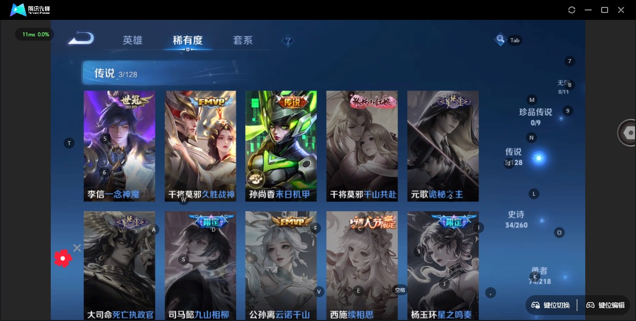 - [11883611]V7 12传说 125英雄 219皮肤 可修改实名 优质装备:云鹰飞将(小将军),炽阳神光,一念神魔,末日机甲-孙尚香(绿蚂蚱),超时空战士-狄仁杰,无双飞将,燃星之曲,记忆之芯(机甲兔),妄想实况,澜逐花归海 传说皮:祥瑞亨通 珍宝阁皮:胡桃夹子,蔷薇恋人 限定皮:逐霄战戟,至尊宝,异界灵契(白毛香),飞衡(韩信年限),遇见飞天,五谷丰年,冰锋战神,李小龙,大圣娶亲 史诗皮:化蝶舞,星界战将,谪仙醉月,石田雨龙,琥珀纪元伽罗,百相守梦-百里守约,星界特工,百相守梦-黄忠,黄金分割率,特工魅影,千年之狐,蒙恬荣光圣徽,偶像歌手,猫狗日记-孙策,乱世虎臣,节奏热浪,修罗,摇滚巨星,水果甜心,德古拉伯爵,暗隐猎兽者,鬼剑武藏,天秀·启明,纤云弄巧,乘风破浪,月团寄思,水晶猎龙者,唤灵魅影,金属风暴,原初追逐者,圣诞狂欢,鹰眼统帅,魅力维加斯,黎明之约,赏金猎手,无心,未来纪元-赵云
