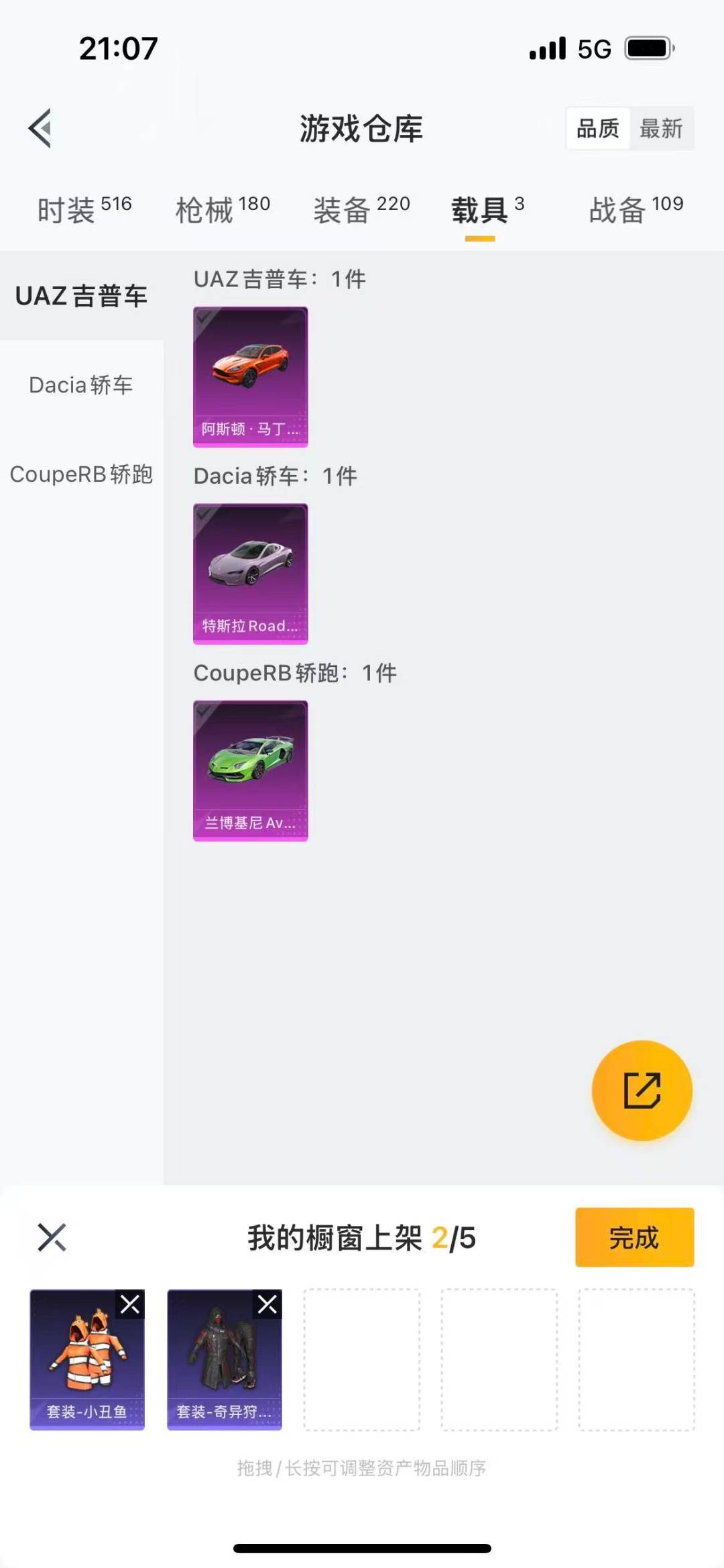 阿斯顿·马丁DBX(橙),特斯拉Roadster(沁心粉),兰博基尼Aventador_SVJ(翡翠绿),僚机-圣域龙宝