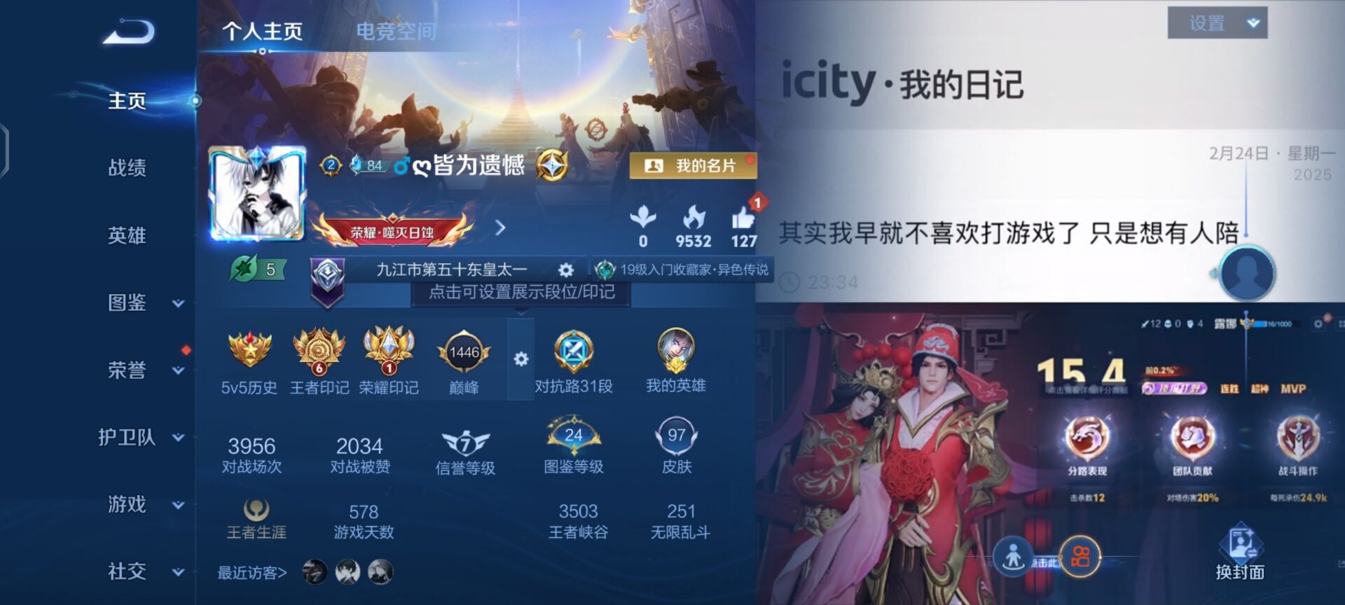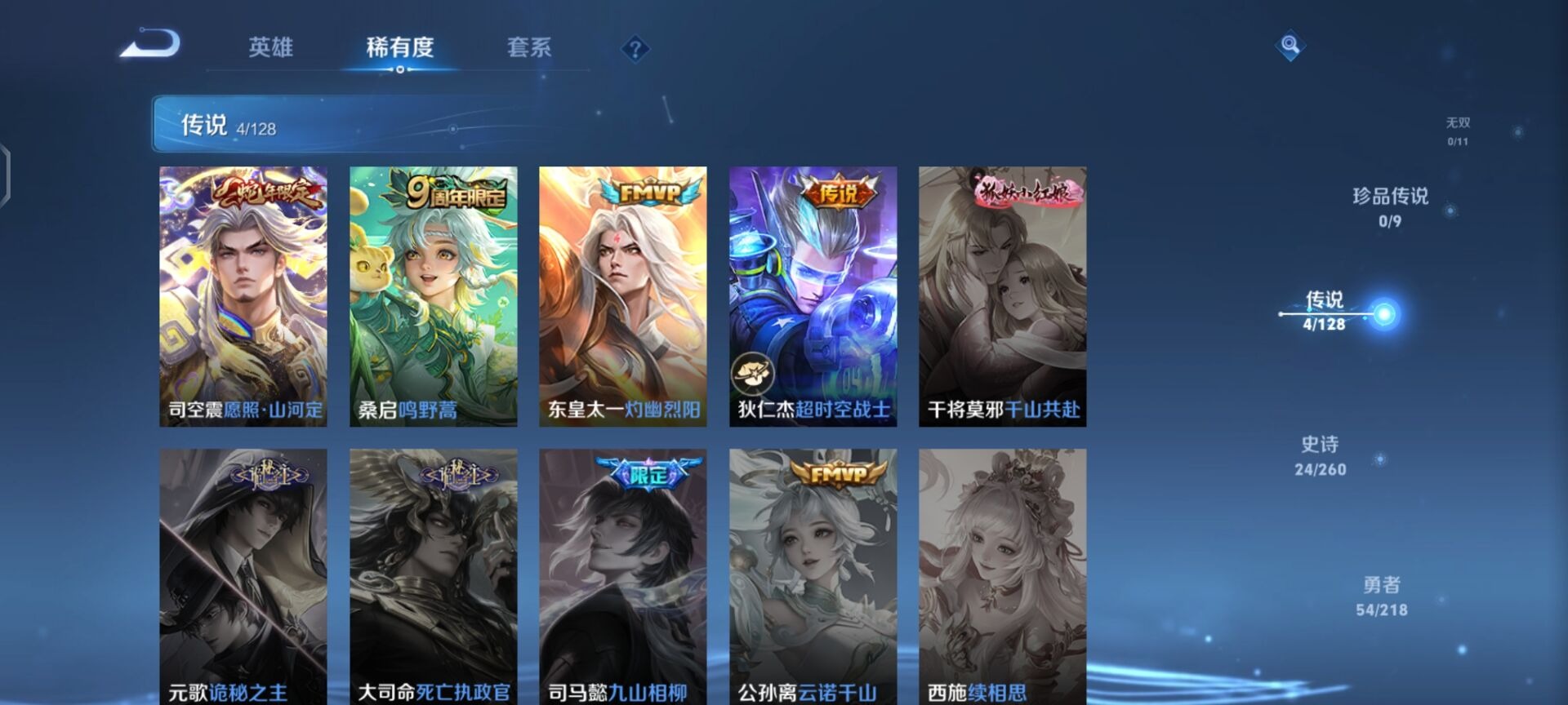 - [12145617]V9 2典藏 1珍品无双 2无双 5珍品传说 20传说 125英雄 255皮肤 可修改实名 优质装备:馥梦繁花,天鹅之梦(小乔典藏),真我赫兹(瑶)(瑶无双),小乔时之魔女(小乔无双),拾光映像(瑶典藏),器灵·落星盏,酷洛米之心,大耳狗之梦,黄金射手座,黄金白羊座,炽阳神光,游龙清影(小青龙),永恒水手月亮,澜逐花归海,涂山容容 珍品传说:时之奇旅-孙策,兔狲·蓬尾 传说皮:乘龙·铭钟鼎(赵云年限),落雪白狼,云诺千山,续相思,幻光神枪 珍宝阁皮:蔷薇恋人,女武神 限定皮:愿照·九州拓(澜年限),愿照·福禄聚(蔡文姬年限),愿照·岁时盈(虞姬年限),愿照·山河定(司空震年限),愿照·众生和(妲己年限),愿照·千秋盛(女娲年限),逐霄战戟,陌上桑,鸣野蒿,傲雪梅枪,寅虎·展翼(孙膑年限),时之彼端,神威(电光马子),山海·碧波行(瑶年限),至美·化雀舞,高山流水,五谷丰年,游园惊梦,李小龙,默契交锋-花木兰,玉兔公主 史诗皮:赞萌露比,鸭鸭历险记-刘禅,器灵·浮梦炉,狼魂孤将,绮世丹青,瑰影绮梦,化蝶舞,龙之律动,雪豹·霜爪,藏狐·褐绒,布丁狗之誓,小牛鸭,茶境仙,百相守梦-黄忠,谪仙醉月,炽弈燎原,破空之剑,战舞者,涂山红红,夜落电台,蔬乡物语(鲁班七号),幻珠鲛人,守夜人,遇见神鹿,电玩小子(小书包),千年之狐,永昼,冰冠公主,白蛇,青蛇,百解令(蒙犽),魅语,电玩·爆裂旋风,偶像歌手,完美假期,龙骑士(小龙虾),暗夜猫娘,猫狗日记-孙策,猫狗日记-大乔,乱世虎臣,修罗,女仆咖啡,摇滚巨星,水果甜心,绅士熊喵,天才门将,心灵骇客,时之奇旅-安琪拉,德古拉伯爵,暗隐猎兽者,鬼剑武藏,舞动绿茵,地狱岩魂,诗语江南,纤云弄巧,拒霜思,缤纷独角兽,乘风破浪,逐浪之夏,水晶猎龙者,圣诞恋歌,鹰眼统帅,魅力维加斯,黎明之约,奇遇舞章,无心,未来纪元-赵云