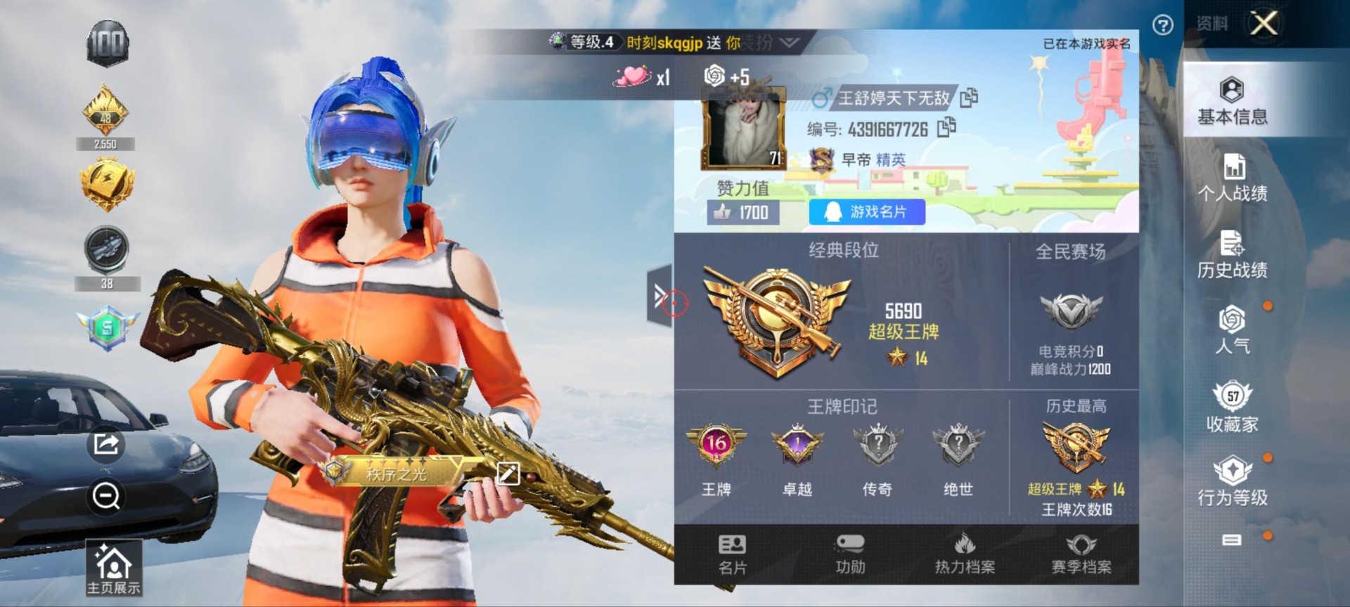 - [12288601]1红装 2特效枪 1印记 可二次 可修改实名 优质装备:灵猫魔法师-塞维尔,二级灵猫魔法师-塞维尔,蜜獾-荧海星豚 稀有枪皮:DP-28-豹影疾电 四级特效枪:四级DP-28-豹影疾电 二级特效枪:二级蜜獾-荧海星豚 紫色装扮:云朵鹅,彩虹兔,雪绒豹,混沌火种,长空猛禽,蓝海鲸歌,蜜露汐语,魅力单车,鹤鸣,风玲 优质战备:炙焰牛王降落伞,灵猫魔法师降落伞,荧海星豚降落伞