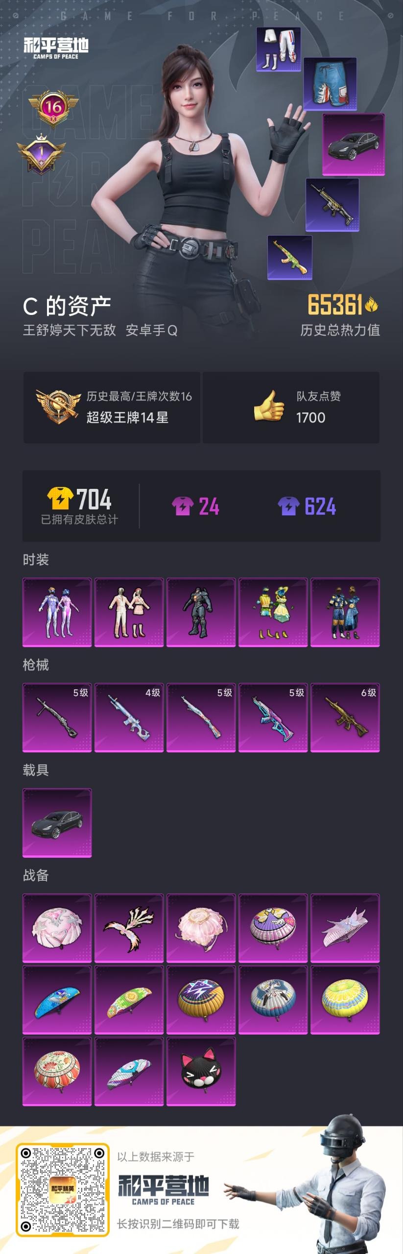 - PX_2096243- 苹果手Q-11王牌印记-13粉装-12特效枪-1载具-热力值-213套装-313枪皮-3卓越印记-2传奇印记 【13粉装】,梦幻火箭,初号机 觉醒Ver.,天使彩虹糖,繁龙极客,狂魅哈莉,极致幻想,古堡领主,复仇流浪者,樱桃泡泡,挚爱序曲,金丰海韵,幻影战神,烟云彩露 【12特效枪】AKM-幽焰骑士-1级 AKM-梦之光华-1级 AKM-炫紫旋律-7级 SCAR-L-锦绣绵