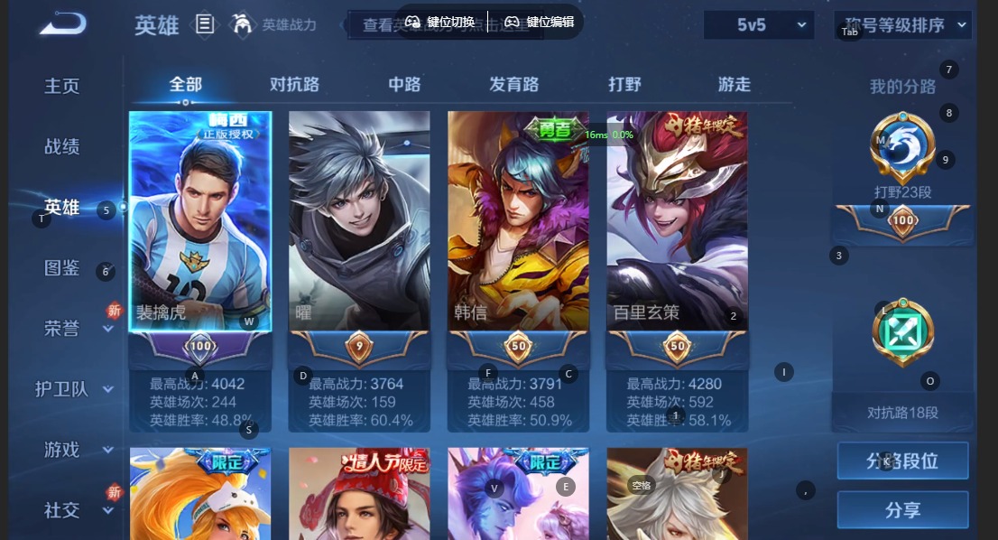- [12091138]V9 2典藏 1无双 2珍品传说 22传说 125英雄 299皮肤 可修改实名 优质装备:鸣剑·曳影,弑枪猎影(韩信典藏),离恨烟(公孙离无双),朽木白哉,黑崎一护,黄金狮子座,云鹰飞将(小将军),绛天战甲(鸡嘴战神),炽阳神光,末日机甲-孙尚香(绿蚂蚱),地狱火,地狱之眼,时之恋人-刘备(电焊工),淬星耀世,无双飞将,山海·炽霜斩(李信年限),灼幽烈阳,妄想实况,澜逐花归海 传说皮:乘龙·铭钟鼎(赵云年限),乘龙·淬吴钩(孙策年限) 珍宝阁皮:妄想食味 限定皮:陌上桑,夏侯惇霜北刀,至尊宝,白虎志(电光耗子),白晶晶,时雨天司(水龙头),飞衡(韩信年限),瑞麟志(木兰年限),遇见飞天,青龙志(铠年限),武圣,天狼狩猎者,龙胆,烈魂,岱宗(典韦年限),玄武志(苏烈年限),朱雀志(守约年限),如梦令-后羿,圣诞老人,默契交锋-兰陵王,孙行者,大圣娶亲,引擎之心,百木心枪,时之奇旅-妲己,神器·万象笔,梦圆繁星 史诗皮:星界战将,龙之律动,石田雨龙,撼地雄心,破空之剑,涂山红红,东方月初,蒙犽顽岩魄,琥珀纪元伽罗,蔬乡物语(鲁班七号),紫霞仙子,苍穹之光,电玩小子(小书包),白龙吟,黄金分割率,特工魅影,千年之狐,永昼,江河有灵,末日机甲-莱西奥,雪夜绮愿(周瑜),真我赫兹(百里守约),魅语,百解令(蒙犽),高渐离燃音魔法,无限星赏官,匿光破解者,冰冠公主,偶像歌手,晚萤,暗夜猫娘,龙骑士(小龙虾),末日机甲-吕布,猫狗日记-孙策,猫狗日记-大乔,时之恋人-孙尚香,节奏热浪,修罗,女仆咖啡,水果甜心,绅士熊喵,天才门将,星夜王子,心灵骇客,功夫厨神,德古拉伯爵,暗隐猎兽者,幽灵船长,鬼剑武藏,暗渊魔法,舞动绿茵,地狱岩魂,纤云弄巧,拒霜思,缤纷独角兽,乘风破浪,逐浪之夏,水晶猎龙者,曙光守护者,箭羽风息,金属风暴,圣诞恋歌,鹰眼统帅,暗夜贵公子,雪上飞焰,赏金猎手,滕王阁序,未来纪元-赵云