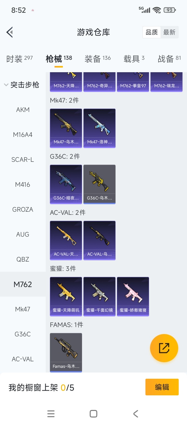 - PX_2111803- 苹果手Q-2王牌印记-4粉装-5特效枪-0载具-33089热力值-74套装-98枪皮-1卓越印记-0传奇印记 【4粉装】,冷漠罗丽,紫电风暴,炙焰牛王,绮梦青鸾 【5特效枪】SCAR-L-甜梦小狐-6级 GROZA-镜光银凌-5级 AUG-暖羊咩咩-5级 Kar98K-巳巳如意-5级 M24-暗星紫秘-5级 【2稀有紫装】,小丑鱼,龟仙人, 【74稀有时装】,SS31特训