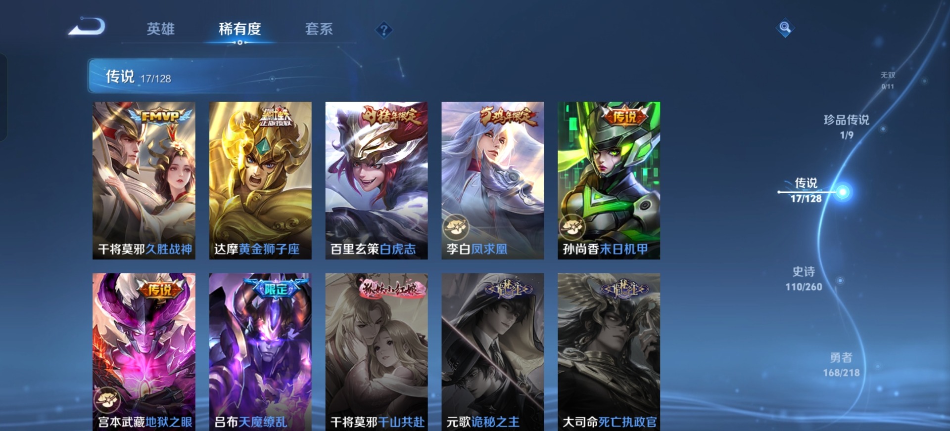 - PX_2072338-72 安卓QQ/永恒钻石/37皮肤/58英雄/0典藏/0珍品无双/0无双/0珍品传说/5传说/4史诗/4稀有英雄 【5 传说皮肤】地狱火 孙悟空,无限倾心 项羽,一念神魔 李信,淬星耀世 赵云,绛天战甲 铠, 【4 史诗皮肤】魅力维加斯 妲己,皇家上将 赵云,水果甜心 孙尚香,江河有灵 阿古朵, 【16 勇者皮肤】太极少年 赵怀真,乐园追猎者 白起,海盐诗旅 桑启,阴阳师 狄