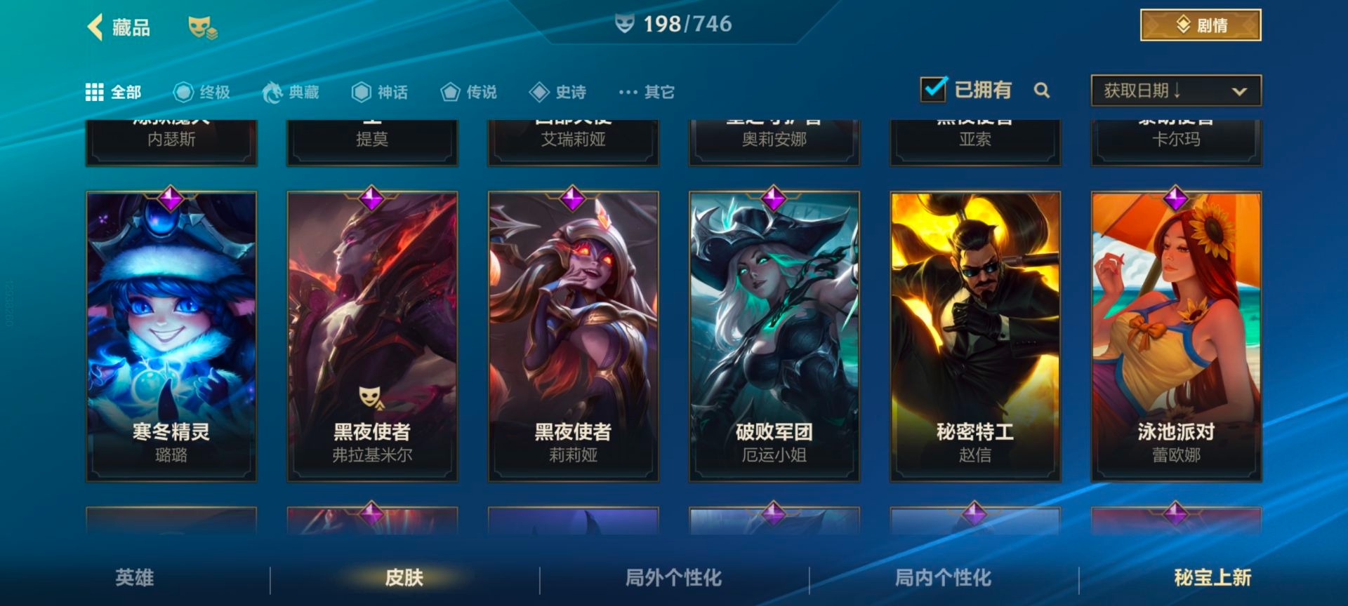 - PX_2095928-实名: 可修改 贵族等级: V8 英雄数: 123 皮肤数: 251 荣耀水晶: 无限飓风号 星传说: 幽冥火,幻舞叠翠 传说皮: 冠军飞将,猫影幻舞,久胜战神,地狱火,乞巧织情,游龙清影,淬星耀世,超时空战士-狄仁杰,山海·炽霜斩,山海·琳琅生,山海·苍雷引,炽翼辉光 限定皮: 遇见飞天,李小龙,祈雪灵祝,游园惊梦,梁祝,逐梦之光,凤求凰,寅虎·御盾,凤凰于飞,至尊宝,大圣