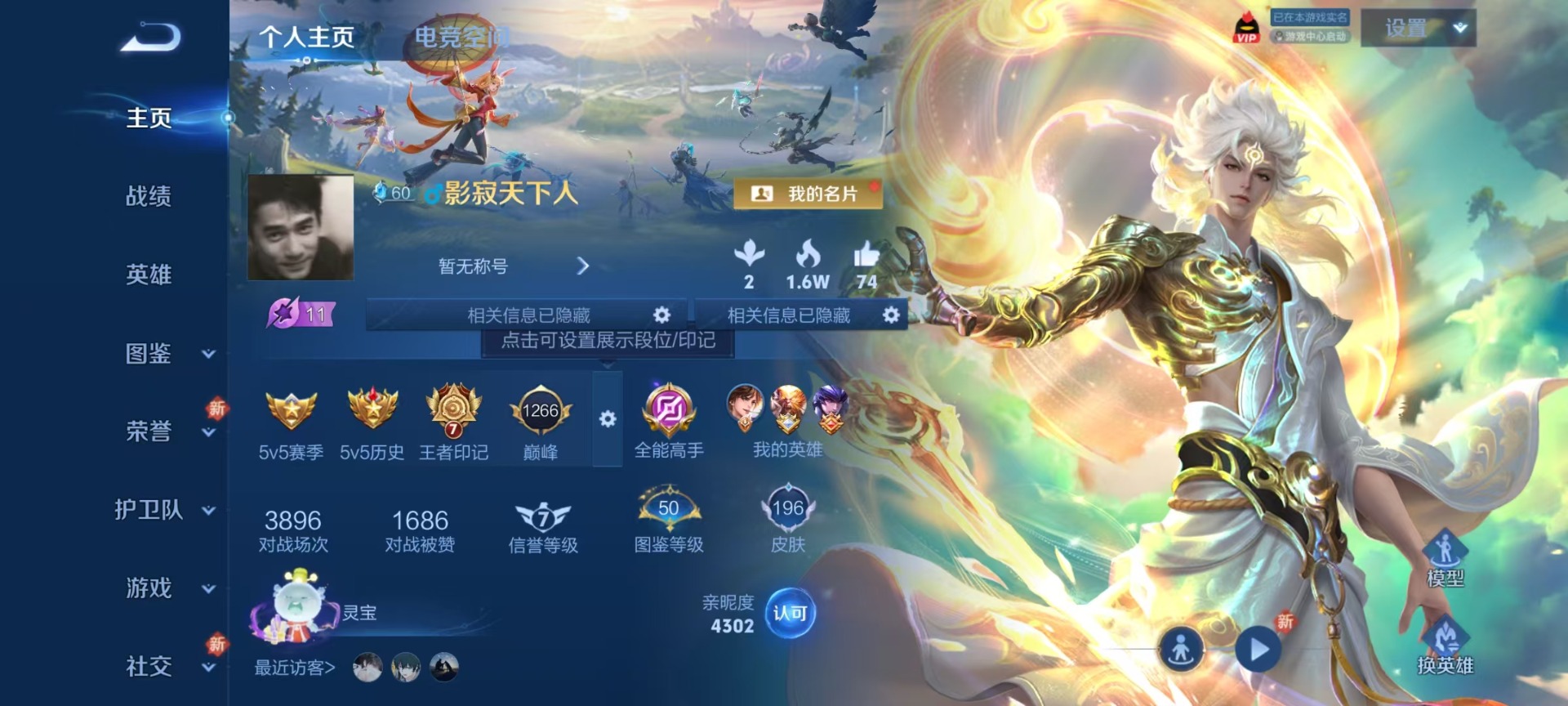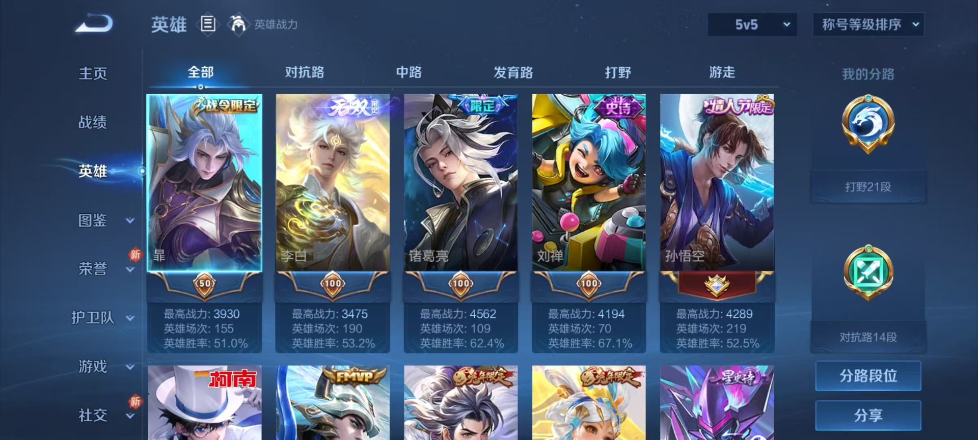 - PX_2093859-实名: 可修改 贵族等级: V5 英雄数: 46 皮肤数: 33 传说皮: 无双飞将,祥瑞亨通 限定皮: 愿照·山河定