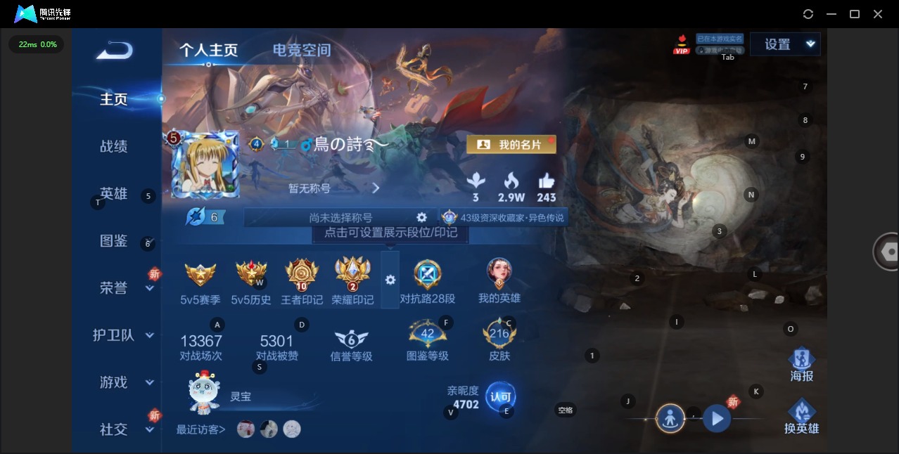 - [12116185]V8 1典藏 1无双 2珍品传说 16传说 124英雄 238皮肤 可修改实名 优质装备:鸣剑·曳影,韩信群星魔术团(韩信无双),怪盗基德,黄金狮子座,炽阳神光,末日机甲-孙尚香(绿蚂蚱),地狱火,零号·赤焰,地狱之眼,无双飞将 珍品传说:时之奇旅-孙策 传说皮:乘龙·问璇玑(孙尚香年限),云诺千山,祥瑞亨通 珍宝阁皮:妄想食味 限定皮:愿照·九州拓(澜年限),愿照·山河定(司空震年限),逐霄战戟,鸣野蒿,至尊宝,傲雪梅枪,时雨天司(水龙头),飞衡(韩信年限),诗剑行,天狼狩猎者,逐梦之影,默契交锋-花木兰 史诗皮:鸭鸭历险记-刘禅,器灵·浮梦炉,化蝶舞,龙之律动,茶境仙,谪仙醉月,星界特工,破空之剑,怒海争锋,决胜骁骑,蔬乡物语(鲁班七号),幻珠鲛人,织梦人,紫霞仙子,白龙吟,黄金分割率,特工魅影,千年之狐,百解令(蒙犽),高渐离燃音魔法,偶像歌手,乱世虎臣,修罗,水果甜心,暗隐猎兽者,鬼剑武藏,天秀·启明,纤云弄巧,繁星吟游(呼啦呼啦),缤纷独角兽,乘风破浪,逐浪之夏,水晶猎龙者,曙光守护者,圣诞狂欢,鹰眼统帅,赏金猎手,未来纪元-赵云