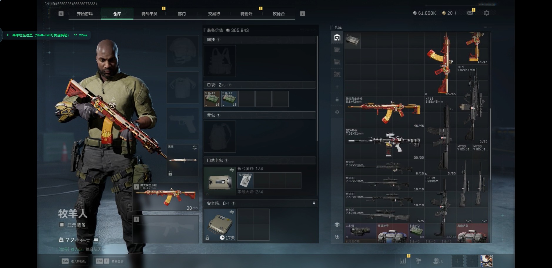 [11529143]总资产:107.1M 11传说枪械 哈夫币:61.868K 进阶安全箱(2×2)9.15号到期 可二次 可修改实名 烽火地带段位:钻石 全面战场段位:无段位 传说武器皮肤:93R-捞点薯条,Vector冲锋枪-狩猎时刻,G3战斗步枪-狩猎时刻,M16A4突击步枪-狩猎时刻,AWM狙击步枪-捞点薯条,腾龙突击步枪-捞点薯条,CAR-15突击步枪-阿米娅,勇士冲锋枪-能天使-午夜邮差,Vector冲锋枪-能天使-午夜邮差,复合弓-黑-天际线,M4A1突击步枪-阿米娅 史诗武器皮肤:M16A4突击步枪-竞赛选手,SG552突击步枪-深海恐惧,SV-98狙击步枪-林中猎手,SCAR-H战斗步枪-囚徒