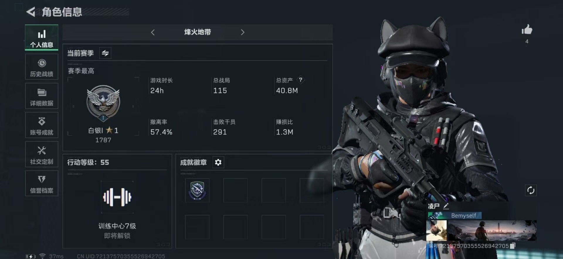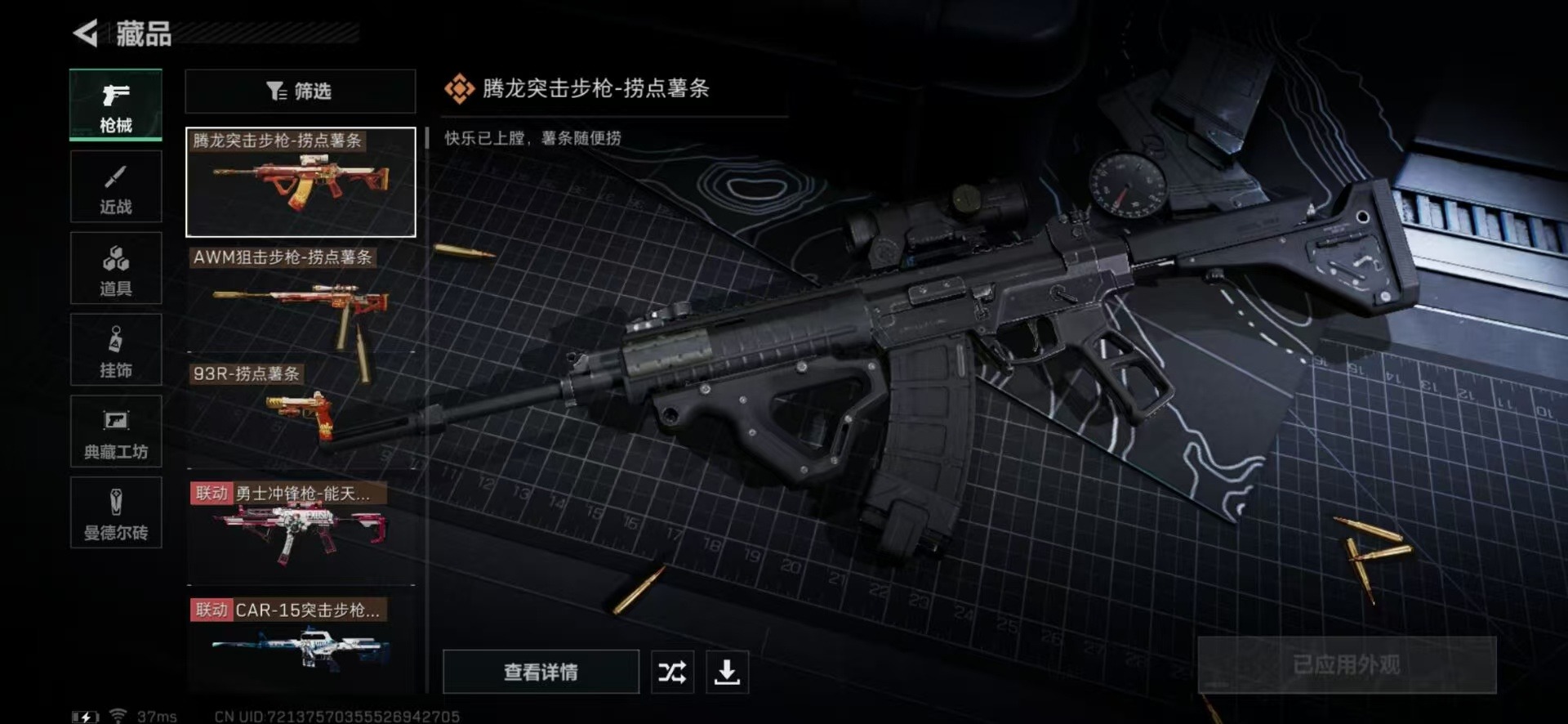 [11529205]总资产:40.8 1干员外观 12传说枪械 进阶安全箱(9.17到期) 可二次 可修改实名 烽火地带段位:白银 全面战场段位:军士长 哈夫币:2.560 传说武器皮肤:AS Val突击步枪-蛇年祥瑞,SR-25射手步枪-水墨云图,SCAR-H战斗步枪-铁艺苍穹,SMG45冲锋枪-骑士,CAR-15突击步枪-阿米娅,复合弓-黑-天际线,AWM狙击步枪-捞点薯条,腾龙突击步枪-捞点薯条,93R-捞点薯条,勇士冲锋枪-能天使-午夜邮差,M7战斗步枪-维京,M4A1突击步枪-蚀金玫瑰 史诗武器皮肤:Vector冲锋枪-潜袭者,K416突击步枪-暗鸦,SR-3M紧凑突击步枪-英雄,QBZ95-1突击步枪-ACE,M4A1突击步枪-特勤执行,AUG突击步枪-特勤执行,Vector冲锋枪-红色彗星,PTR-32战斗步枪-ACE,SKS射手步枪-ACE,M700狙击步枪-蝮蛇,PKM通用机枪-蝮蛇,勇士冲锋枪-深海恐惧,SG552突击步枪-深海恐惧,SV-98狙击步枪-林中猎手,SCAR-H战斗步枪-囚徒,UZI冲锋枪-危险实验,M249轻机枪-维京,SCAR-H战斗步枪-危险实验,SVD狙击步枪-阿萨拉工艺,S12K霰弹枪-曙光,PKM通用机枪-英雄,M700狙击步枪-竞技风,QSZ92G-风林火山 干员外观:红狼-蚀金玫瑰