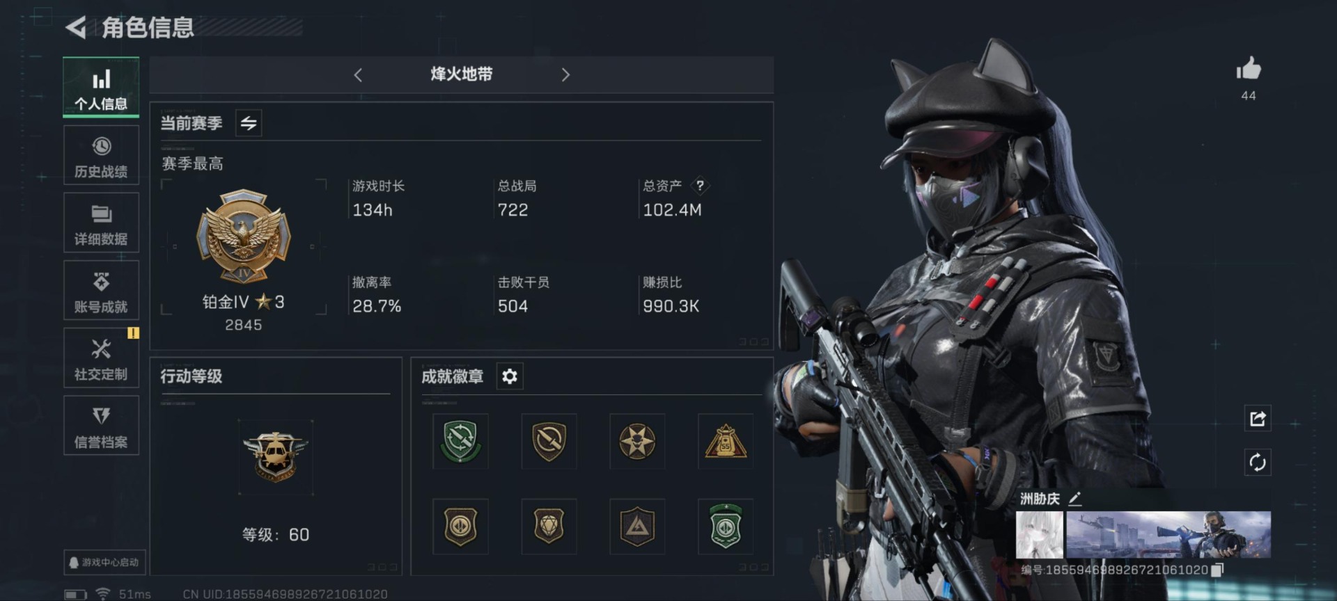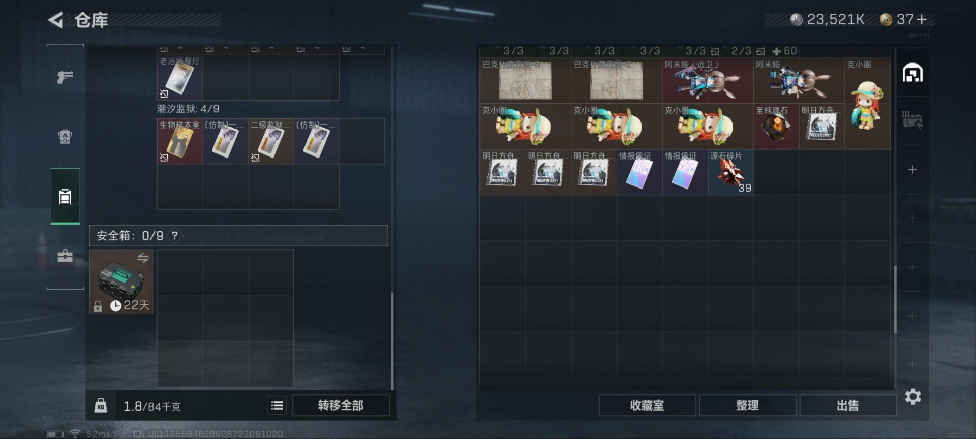 [11529236]总资产:102M 1干员外观 8传说枪械 哈夫币:23.521K 顶级安全箱(3×3)9.15号到期 可二次 可修改实名 优质装备:顶级安全箱(3x3) 烽火地带段位:铂金 全面战场段位:校官 传说武器皮肤:M4A1突击步枪-阿米娅,CAR-15突击步枪-阿米娅,复合弓-黑-天际线,AWM狙击步枪-捞点薯条,腾龙突击步枪-捞点薯条,93R-捞点薯条,勇士冲锋枪-能天使-午夜邮差,725双管霰弹枪-送葬人-无题密令 史诗武器皮肤:M16A4突击步枪-竞赛选手,PKM通用机枪-荒野求生,勇士冲锋枪-深海恐惧,SR-3M紧凑突击步枪-荒野求生,SV-98狙击步枪-林中猎手,SVD狙击步枪-荒野求生,AS Val突击步枪-典狱官,M250通用机枪-囚徒,SV-98狙击步枪-囚徒,SCAR-H战斗步枪-囚徒,腾龙突击步枪-无垢,MP7冲锋枪-无垢,PSG-1射手步枪-无垢,Vector冲锋枪-阿萨拉文明,S12K霰弹枪-曙光 干员外观:蜂医-送葬人·无题密令(S5)