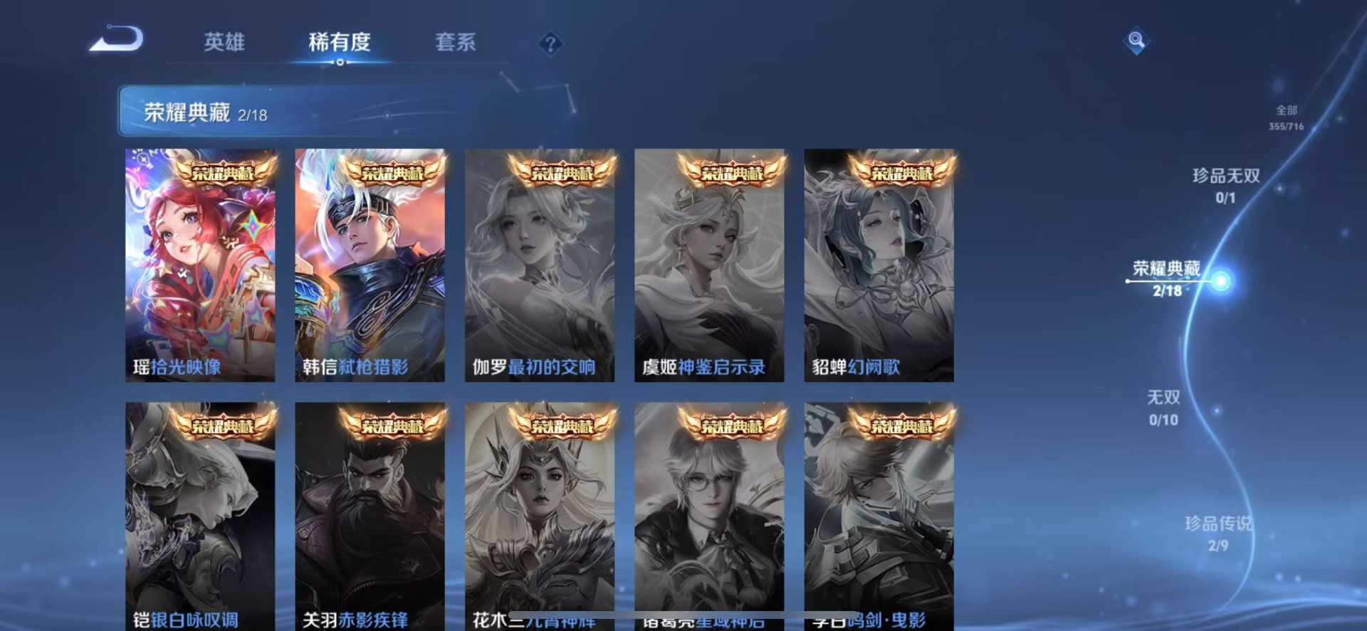 [11529241]V8 2典藏 2珍品传说 29传说 125英雄 355皮肤 可修改实名 女号 荣耀水晶:拾光映像(瑶典藏),弑枪猎影(韩信典藏) 珍品传说:怪盗基德,朽木白哉 传说皮:牧神诗旅,金乌负日,乘龙·问璇玑(孙尚香年限),乘龙·铭钟鼎(赵云年限),乘龙·淬吴钩(孙策年限),吕布曦玄引,落雪白狼,黄金天蝎座,续相思,幻光神枪,玄雷天君,朵莉亚心动手记,黄金狮子座,仲夏夜之梦(大飞蛾),地狱之眼,一念神魔,云鹰飞将(小将军),炽阳神光,时之恋人-刘备(电焊工),绛天战甲(鸡嘴战神),超时空战士-狄仁杰,霜月吟,澜逐花归海 珍宝阁皮:优雅恋人,蔷薇恋人 限定皮:愿照·千秋盛(女娲年限),逐霄战戟,鸣野蒿,武陵仙君(小桃花),魔法小厨娘,神威(电光马子),遇见飞天,高山流水,诗剑行,五谷丰年,李小龙,孙行者,时之祈愿-云中君,玉兔公主,枫霜尽 史诗皮:百相守梦-百里守约,星界战将,茶境仙,苍鳞隐世,器灵·浮梦炉,化蝶舞,鸭鸭历险记-刘禅,龙之律动,谪仙醉月,石田雨龙,决胜骁骑,芈月浮光幕影,怒海争锋,海诺心动手记,夜落电台,撼地雄心,奇遇星旅,蔬乡物语(鲁班七号),乘龙·聚宝船(安琪拉年限),乘龙·忆丹青(大乔年限),琥珀纪元伽罗,破空之剑,小牛鸭,百相守梦-周瑜,戍鼓铭心,遇见神鹿,紫霞仙子,苍穹之光,电玩小子(小书包),特工魅影,千年之狐,冰冠公主,雪夜绮愿(周瑜),百解令(蒙犽),高渐离燃音魔法,蒙恬荣光圣徽,偶像歌手,银翎春语,暗夜猫娘,魅语,末日机甲-吕布,乱世虎臣,节奏热浪,修罗,女仆咖啡,摇滚巨星,水果甜心,绅士熊喵,天才门将,星夜王子,心灵骇客,时之奇旅-安琪拉,功夫厨神,德古拉伯爵,暗隐猎兽者,幽灵船长,鬼剑武藏,暗渊魔法,心灵战警,乐园奇幻夜,舞动绿茵,地狱岩魂,纤云弄巧,拒霜思,缤纷独角兽,乘风破浪,逐浪之夏,水晶猎龙者,曙光守护者,热力回旋,箭羽风息,金属风暴,圣诞狂欢,圣诞恋歌,鹰眼统帅,暗夜贵公子,魅力维加斯,无心,未来纪元-赵云