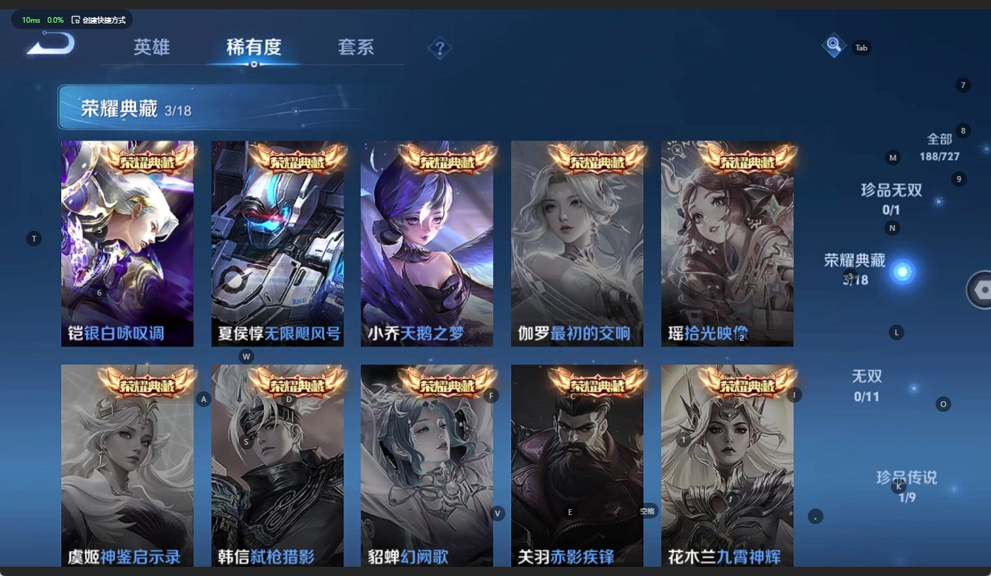 - [11526479]V6 2传说 120英雄 154皮肤 可修改实名 珍宝阁皮:妄想食味,女武神 限定皮:鸣野蒿,傲雪梅枪,绯月行,降魔,御风骁将(吕布年限),逐梦之影,乒乒小将,山海·玄木吟(马可年限) 史诗皮:特工魅影,百解令(蒙犽),龙骑士(小龙虾),末日机甲-吕布,乱世虎臣,节奏热浪,摇滚巨星,水果甜心,暗隐猎兽者,心灵战警,纤云弄巧,逐浪之夏,水晶猎龙者,曙光守护者,热力回旋,金属风暴,原初追逐者,鹰眼统帅,魅力维加斯,无心,未来纪元-赵云